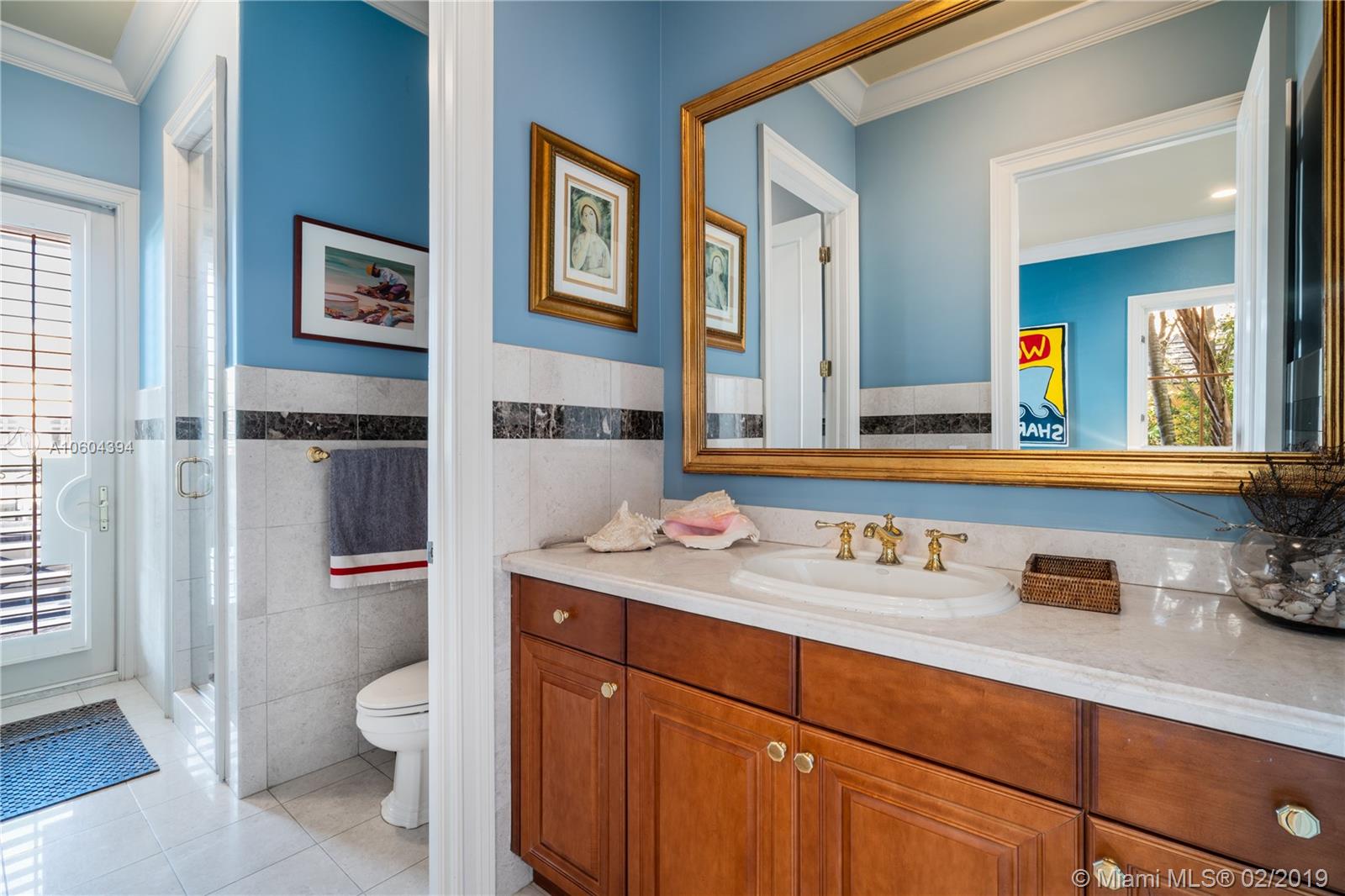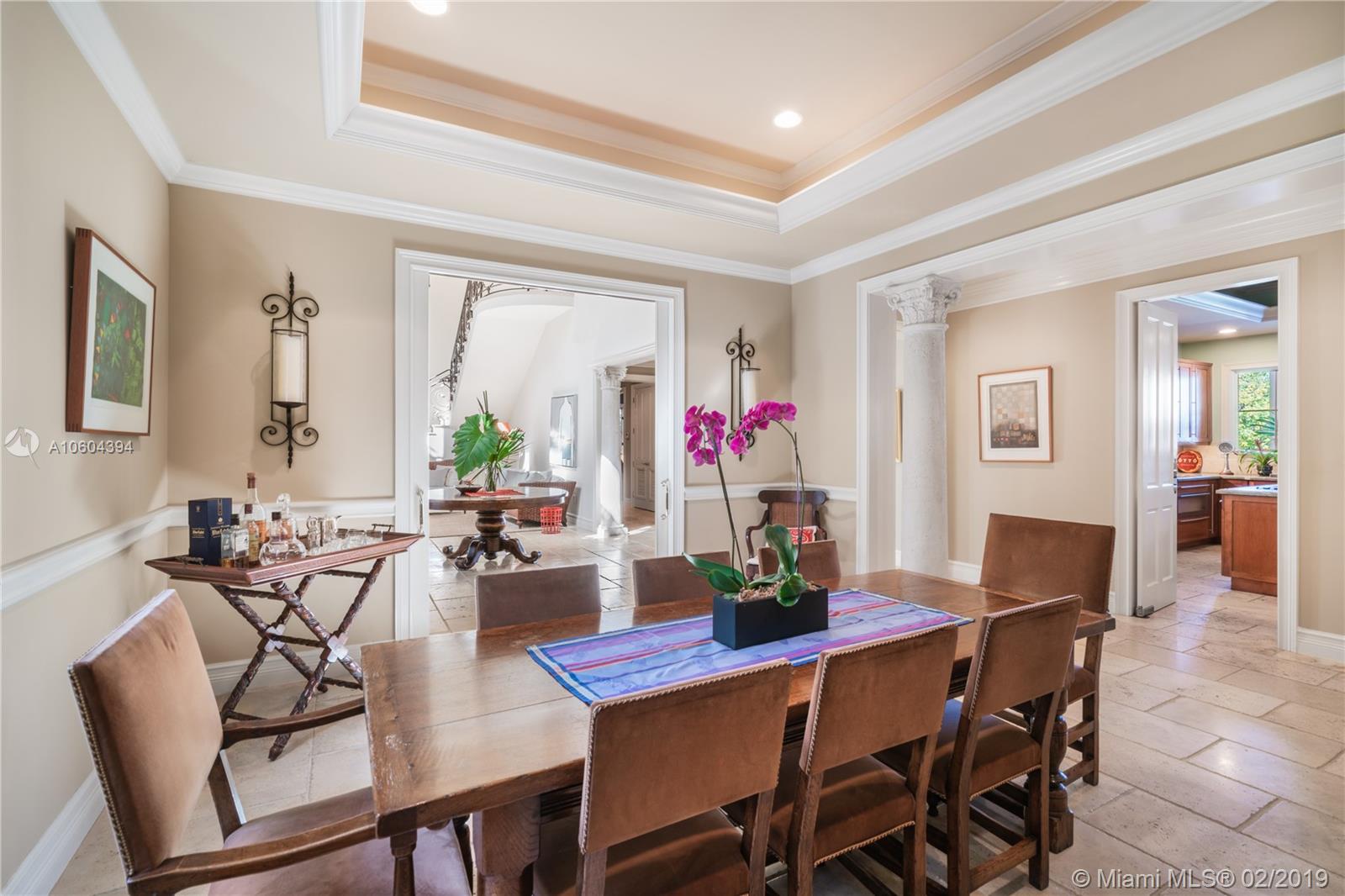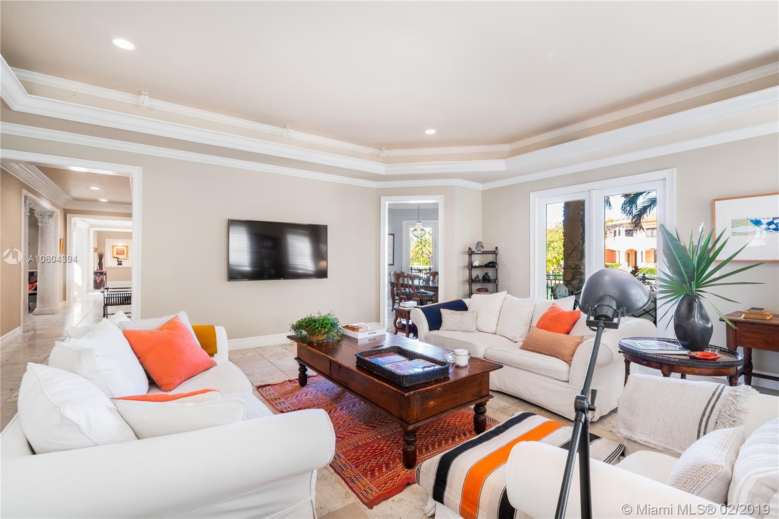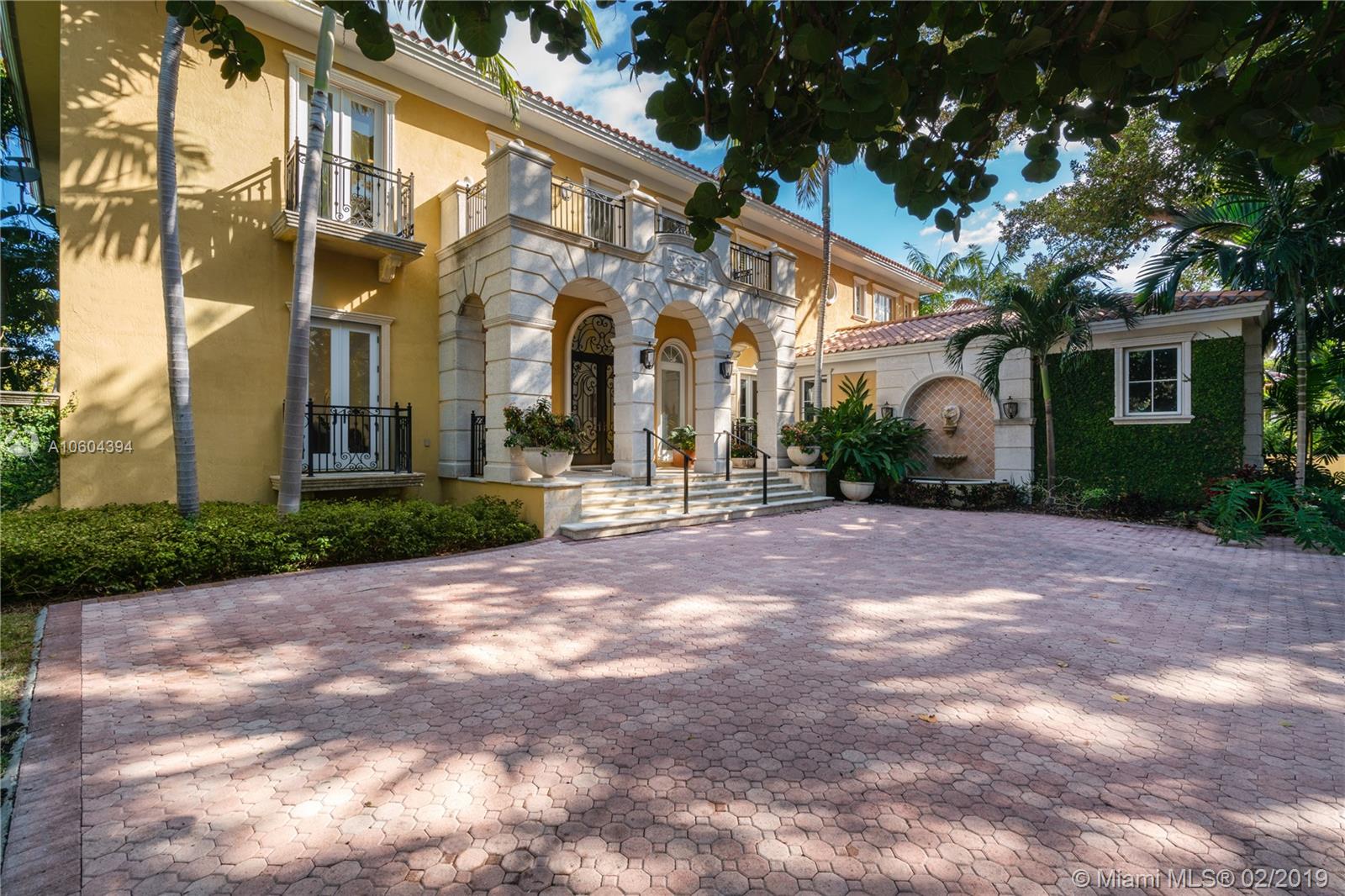 Stunning Bay, Harbor and Miami Skyline Views from this Addison Mizner-inspired waterfront estate. Villa Bellavista, built in 2002 and meticulously maintained, located in a quiet cul-de-sac on Key Biscayne’s coveted Mashta Island. Residence boasts 5 suites upstairs, 2 suites down for office/library/service/guest quarters, 7.5 baths, huge Master Suite with sitting area, Formal Living Room with fireplace, Family/Entertainment Room, Formal Dining, Modern Kitchen, Breakfast Area, all leading to broad open terraces with spectacular water views. Amenities include dual entrances, privacy wall, electrical gates for bothl driveways, 3-car garage, courtyards, pool, spa, new sea wall, 120ft of waterfront and dock for large yacht with immediate access to Smugglers Cove and Biscayne Bay.