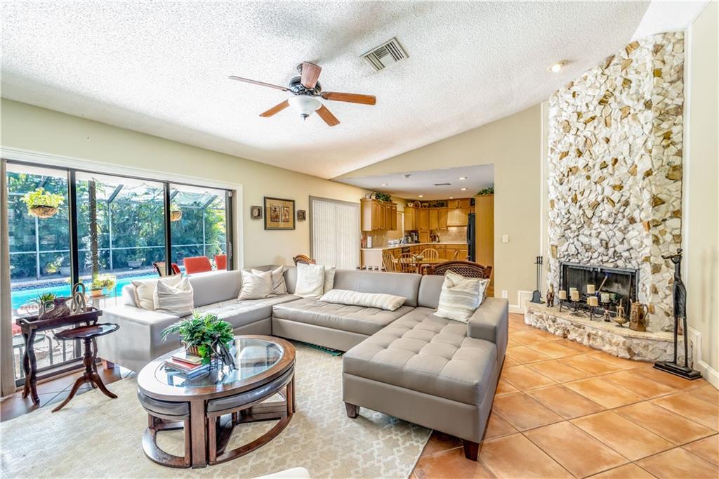 4 bedrm/2 bath home in prestigious Oak Wood! Located on a large corner lot, this beautifully maintained property is a true gem. From it's charming entry with vaulted ceilings to it's country kitchen, this home has so much to offer.The interior of this home is marked by it's ample living space and stunning features like tile floors in main living areas, engineered wood floors in bedroooms, wood burning fireplace and a gorgeous kitchen with industrial extractor fan for cooking. Brand new TRANE A/C, water htr 3 yrs new & new roof 2008. Lots of yard space with partially fenced yard, screened pool & brand new hurricane proof garage door. Call today to see your new home!
