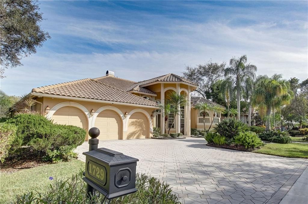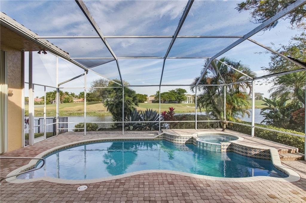PRICE REDUCED TO SELL ASAP! TRIPLE SPLIT FLOOR PLAN! AMPLE NATURAL LIGHT AND HIGH CEILINGS! GREAT FOR ENTERTAINING! This five bedroom home is in a gated community. It features a pool, with a screened in patio, a golf course view, and is on a large, waterfront lot! Upon entering, buyers will be greeted by the fireplace in the formal living area and a view of the pool, canal and golf course. The large, open kitchen looks over the family room, and also has a view of the pool and golf course. The fifth bedroom can be used as a den or office. The master bedroom features two walk in closets and the master bath has a tub and separate shower area. Of the three bedrooms on the opposite side of the home, two share a jack and jill bathroom. The laundry room leads out to the three car garage.