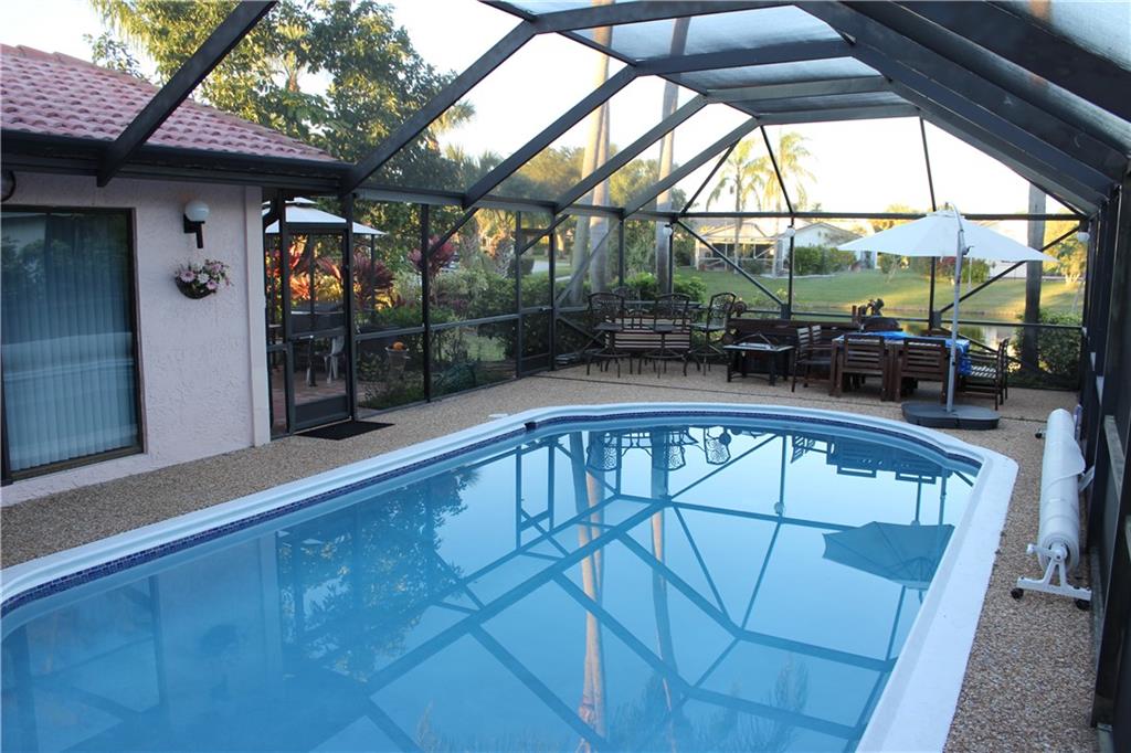 Gorgeous Single Family House with 3 Bedrooms, 2 Bathrooms, 1 Car Garage, Swimming Pool and lake views. This property hast it all, nice upgraded Kitchen with Granite Counter Tops, Stainless Steel Appliances, white wood cabinets. All ceramic tiled in living area and laminate wood flooring in bedrooms. Both bathrooms remodeled with new vanities, tiled, modern showers. Nice private pool all screened, with pool heater and salt chlorinator system for easy maintenance. Pool was resurfaced 1 year ago. Very nice lake views from patio. House is conveniently located in a corner lot with beautiful gardens and plants all around.