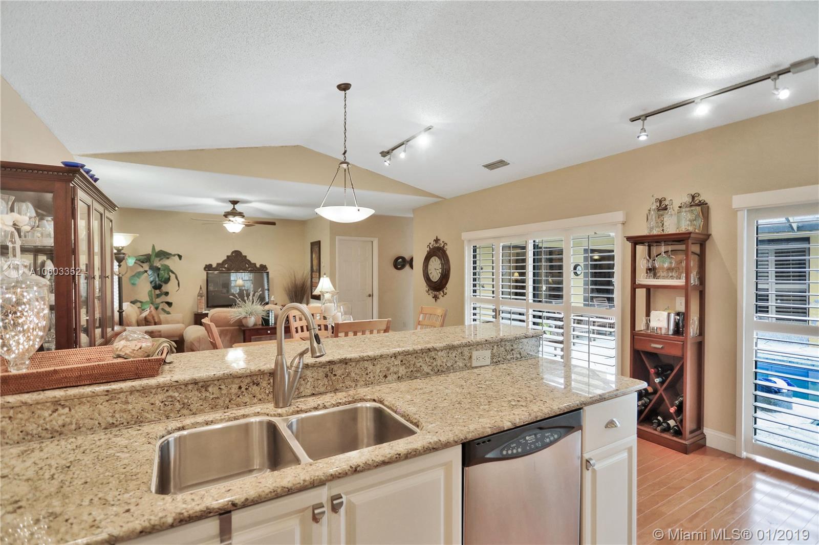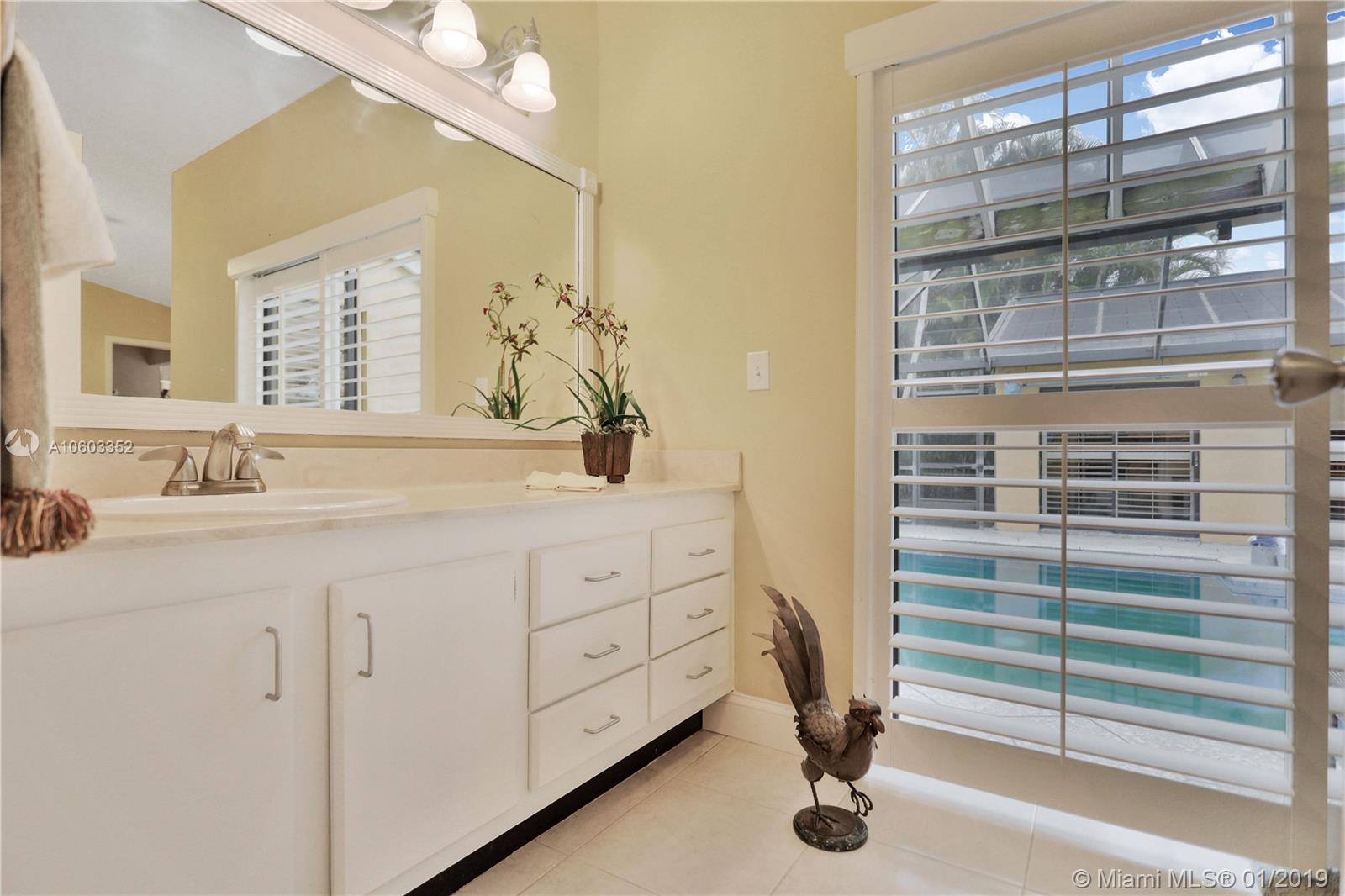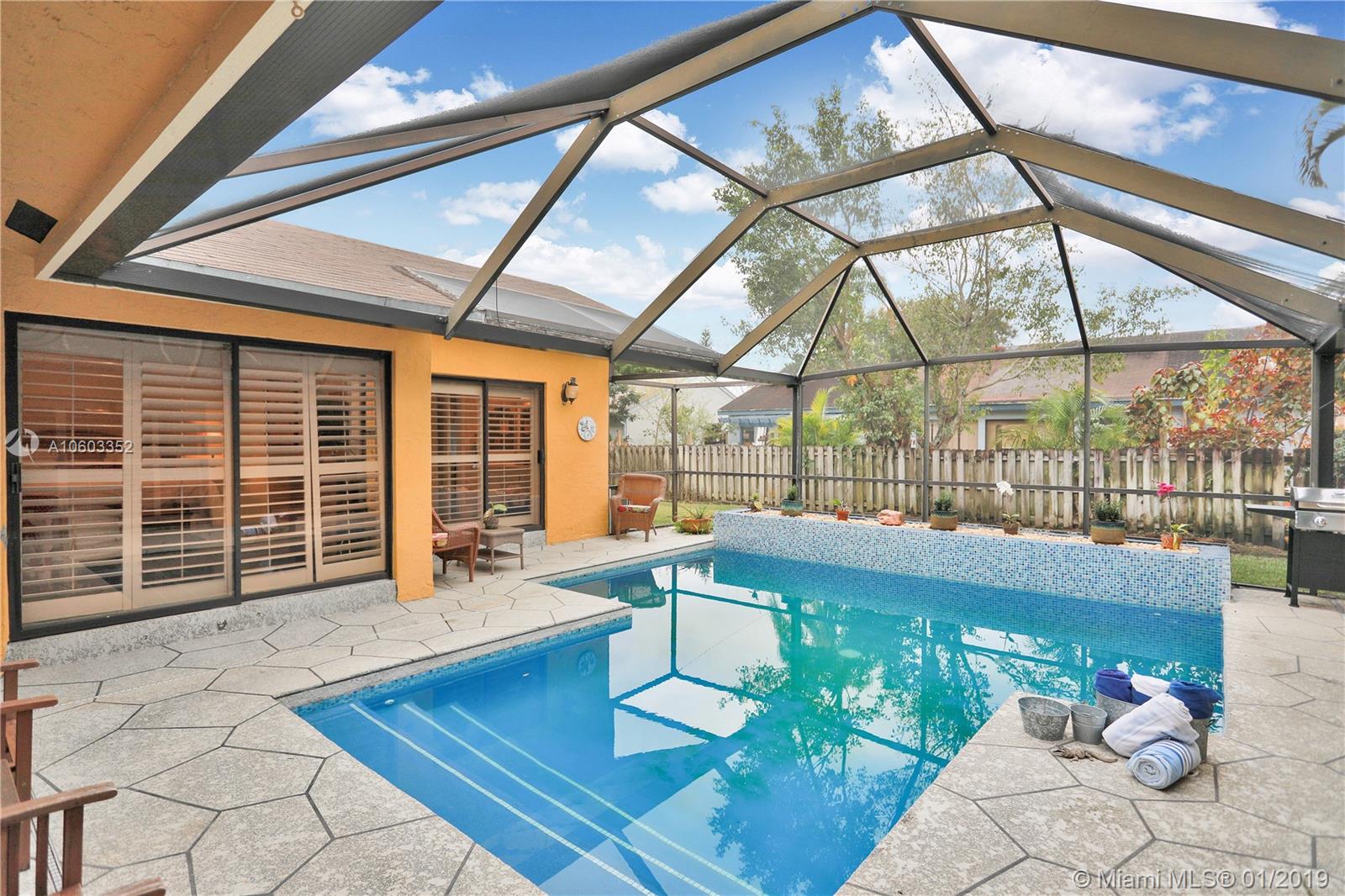 Beautiful pool home in Coral Springs. This home features pool views from almost every room. Plantation shutters in the kitchen, dining room, master bedroom and master bath. There is also a wood burning fireplace in the formal living room. This 3/2 also has a den that can be used as a home office. Six sets of glass doors allow for great natural light. Sky lights in the living room also add more natural light. There is a wet bar with wine refrigerator in the living room. A great home for entertaining! Granite counter tops along with Stainless Steel appliances. Pool was resurfaced in March/April of 2018. New stove/oven in June 2018. This very open floor plan has to be seen!