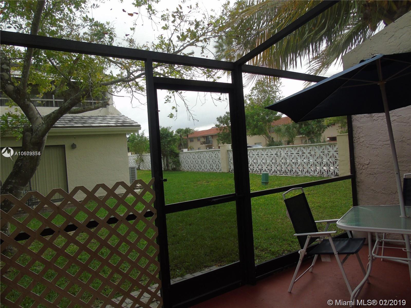 Updated and spacious two story Villa Townhouse in Coral Springs. Updated Kitchen with Granite Counter Tops, easy white tile throughout first floor, in unit laundry, each of the 3 large upstairs Bedrooms boast with laminate floors, spacious closets and huge balconies. In a very quiet and safe community, nearby to main restaurants, excellent schools, Pulix, Walgreens, gas station, and quick access to the Sawgrass expressway. The neighborhood takes care of beautiful green landscaping you can enjoy looking out from the large screened patio or many balconies. The lush side yard is great for playing and is just steps from the pool. Perfect for enjoyment or investment!