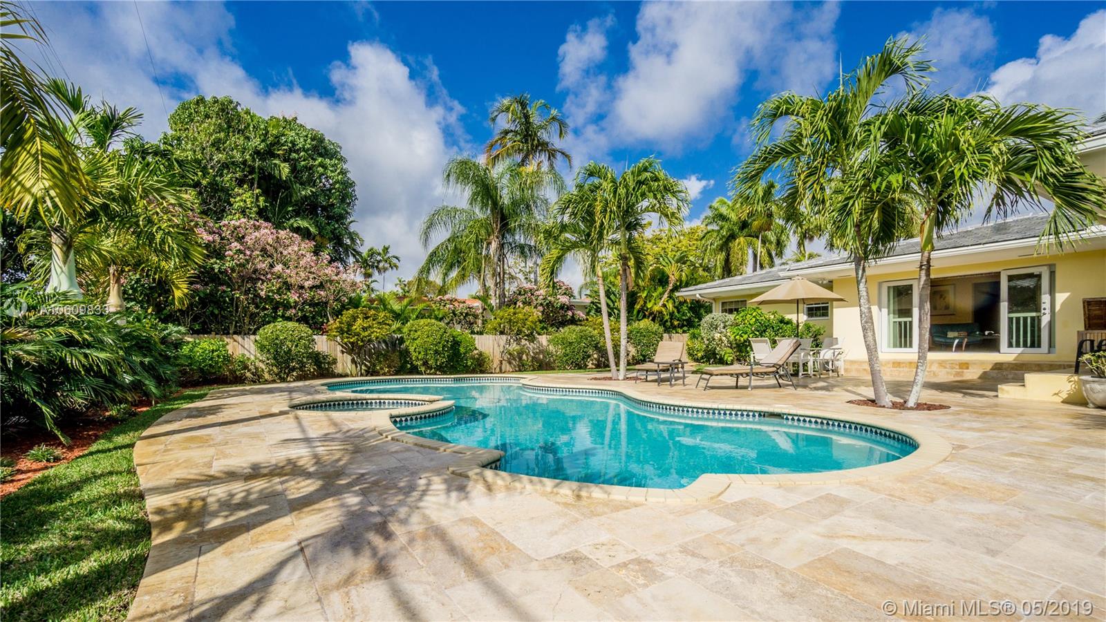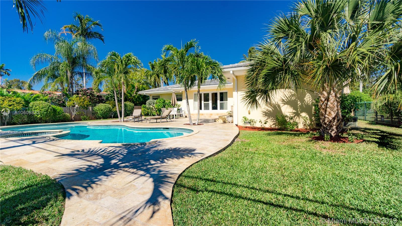 Elegant 3 beds/3.5 bathrooms home in the heart of Miami Shores with spacious backyard, heated oversized swimming pool surrounded by manicured tropical foliage. Totally renovated including, custom kitchen and bathrooms with top of the line appliances, new roof (2017), AC (2017), both under warranty, inside doors with designer handles. Expansive and bright living area with floor to ceiling windows overlooking the fenced-in resort-like outdoor with pool and spectacular marble deck. Perfect for entertaining. Three large bedrooms, two with space for sitting area. Two car garage, insulated with attic storage. 6 parking spaces in front, and room for a boat in the back. Enjoy strolling down the street to Bayfront Park, overlooking the amazing view of Biscayne Bay.