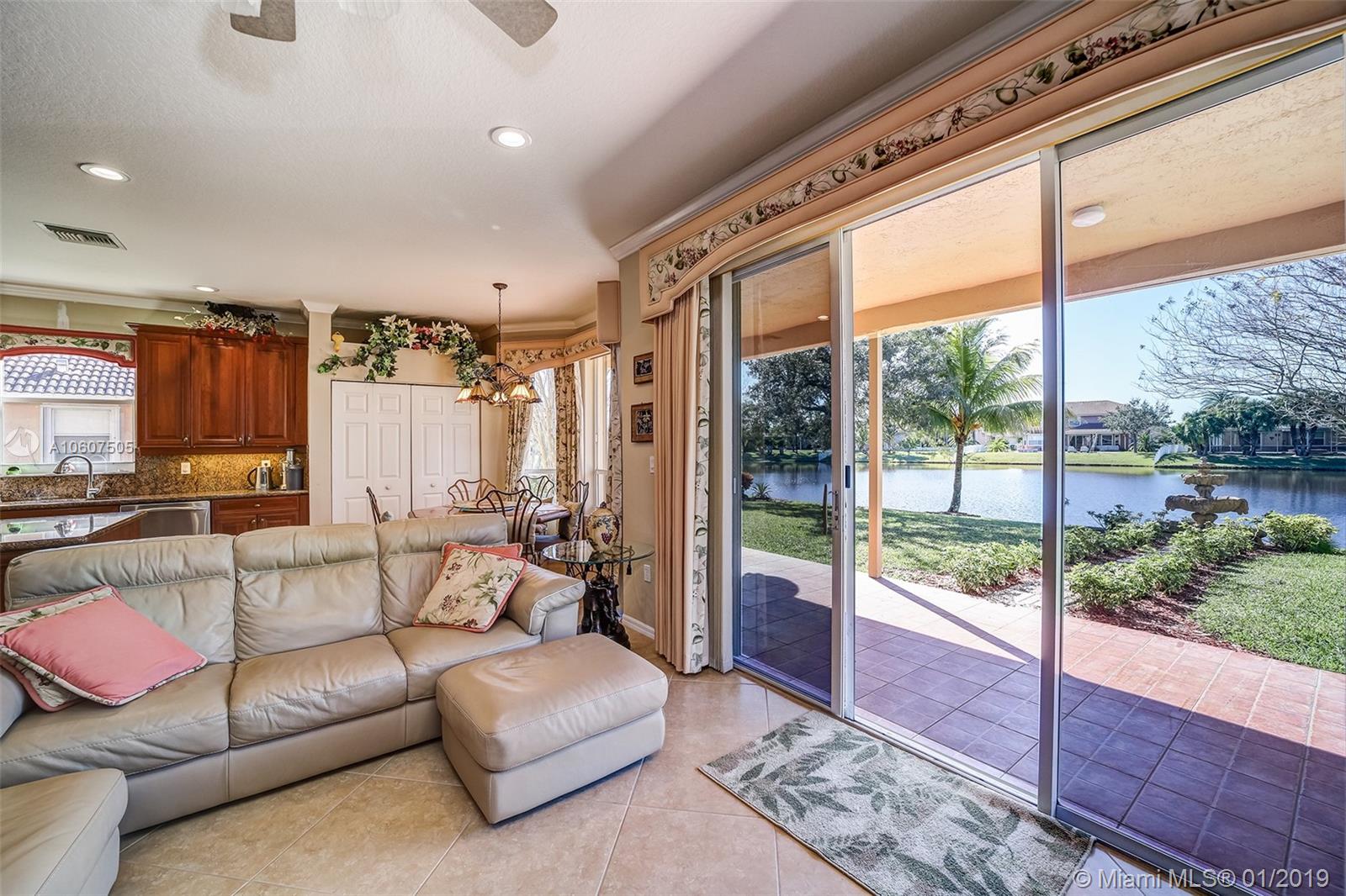 Gorgeous open lake views from this spacious home situated in a quiet neighborhood with excellent rated schools. This home provides spacious open concept floor-plan with high volume ceilings, & features a formal dining room, oversized family room, modern gourmet kitchen. All windows and doors are protected with accordion Hurricane shutters giving you the full Insurance discount. Gated Community with security patrol. State of the art recreation center: amenities include clubhouse, pool, tennis- basketball courts & fitness. HOA includes fiber optic cable, internet, alarm-yard irrigation. THE PERFECT FAMILY HOME!!!