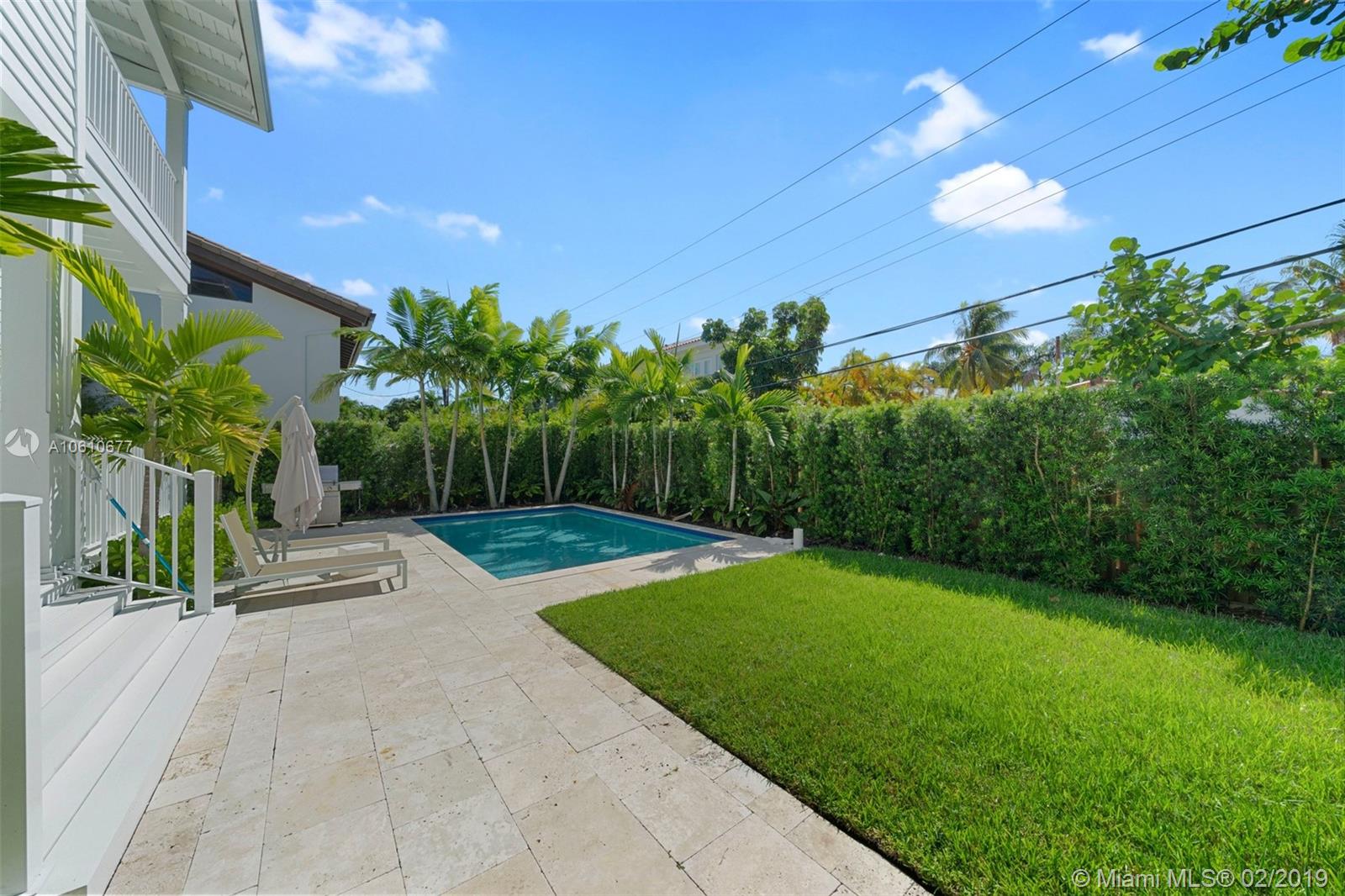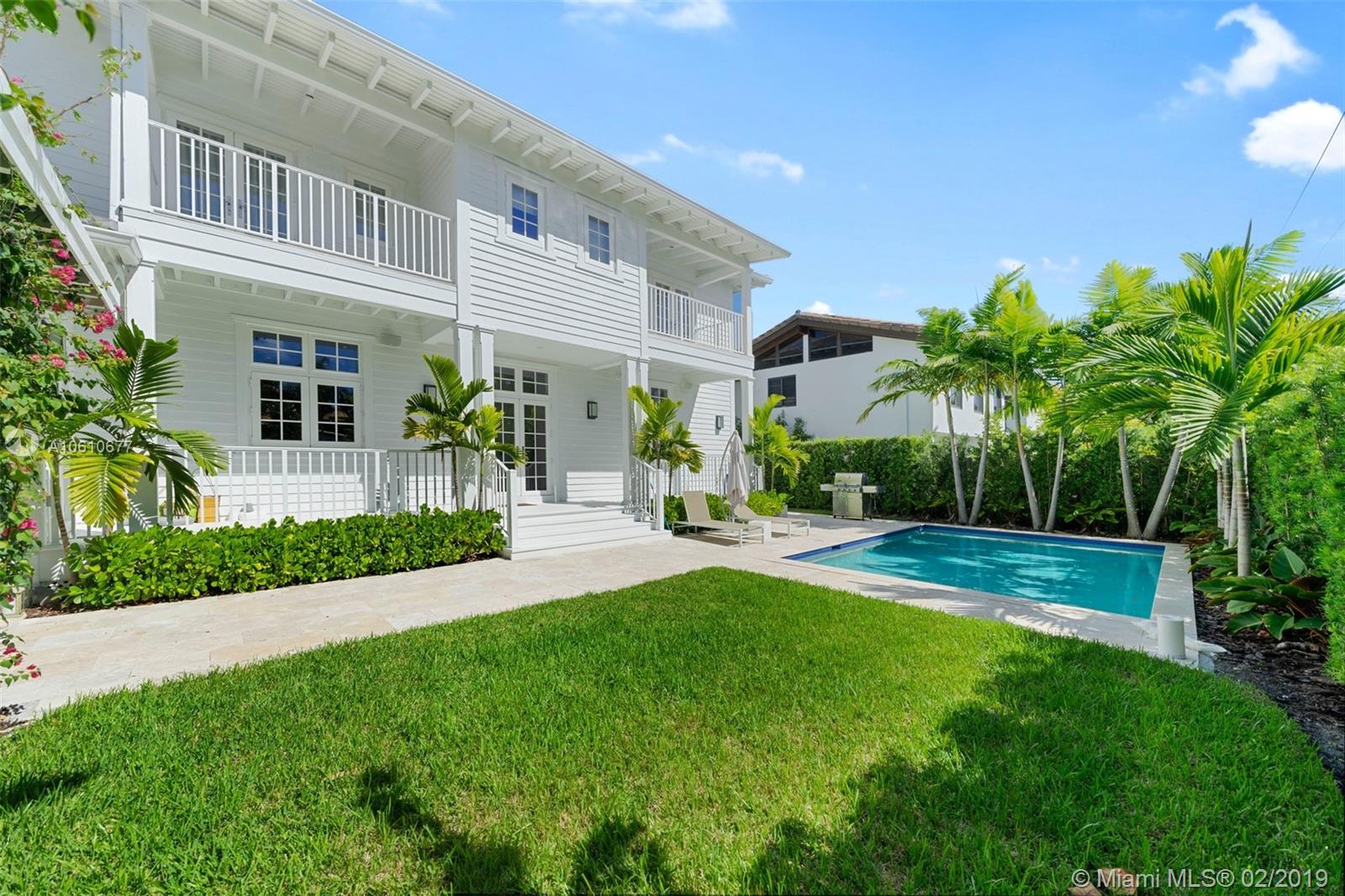 AMAZING! A sun-filled home that you fell love in the moment you walk in! This new elevated Key West style home located on a very quiet street has 3 spacious suites on second level and a guest and staff quarters on the first floor. Great layout, perfect for entertaining and lots of upgrades and architectural detail. This Smart Home has built-in security cameras, surround sound system, electric shades and phone controlled temperature and security . State of the art custom kitchen with high end appliances, wood flooring throughout. Beautifully landscaped including a charming gazebo, bbq area and swimming pool. Impact doors and windows.