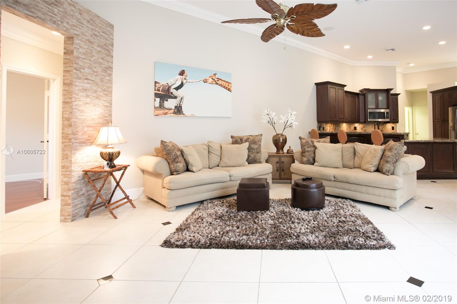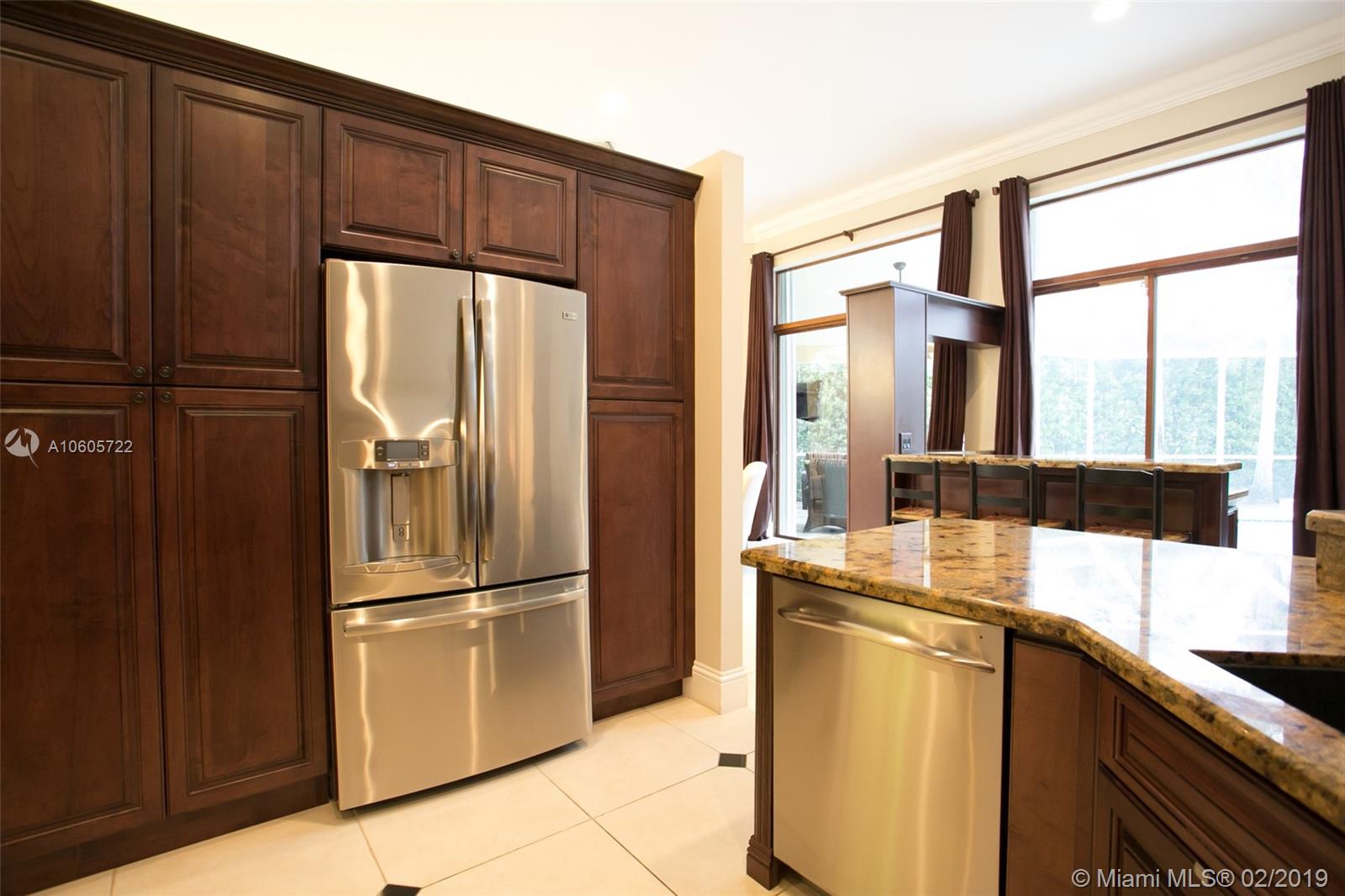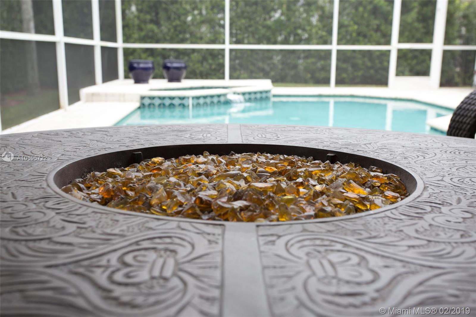 Move in Ready! Set in Weston Hills Country Club, this stunning 4 bedroom 3 bathroom home features a sparkling screened pool, raised spa and paver patio, perfect for enjoying Florida outdoor living! The yard is fully fenced and lushly landscaped for complete privacy! Updated kitchen boasts detailed custom wood cabinets, stainless steel appliances and unique granite counter tops. Tastefully remodeled master bathroom has custom wood cabinets, lighted onyx counters, slipper tub marble tile and flooring. Large neutral tile in living areas and wood flooring in bedrooms. Interior is freshly painted. Impact front windows, accordion shutters and new garage door for hurricane protection. Furnishings available!