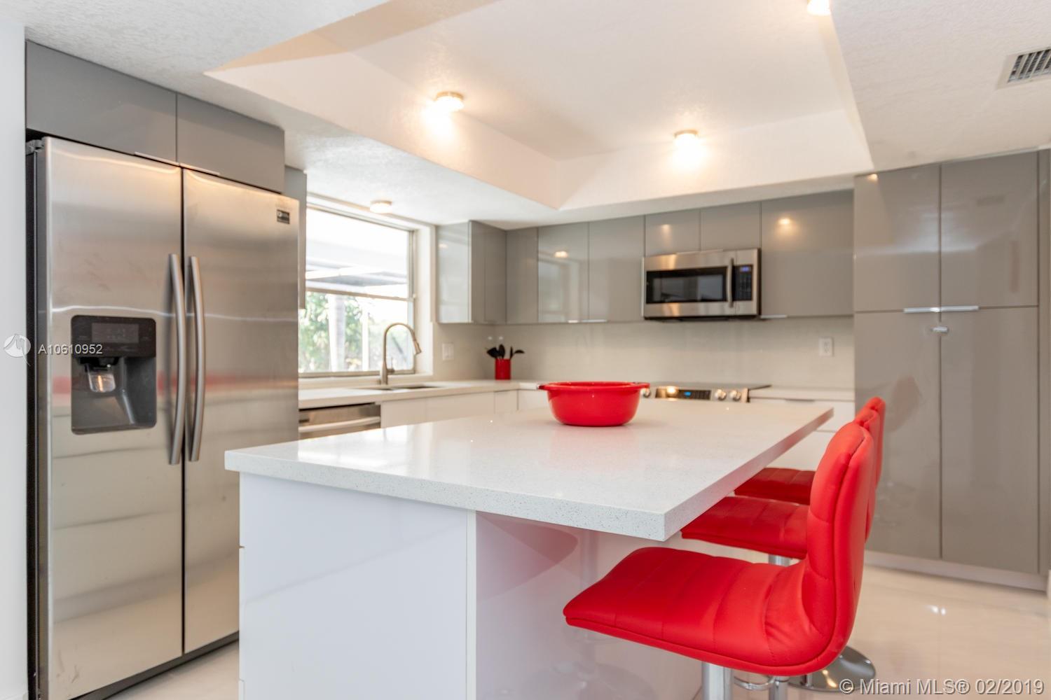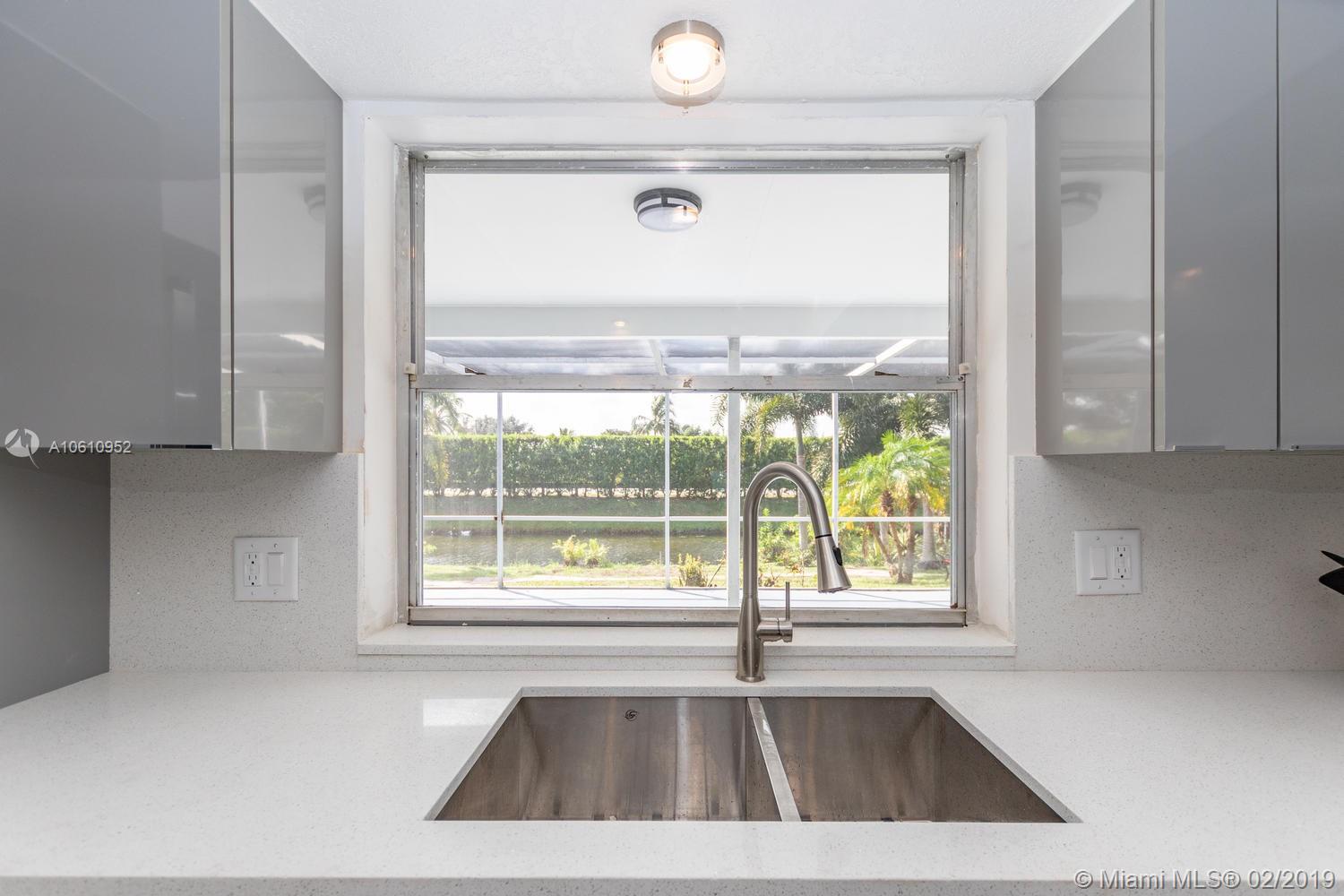 Lovely 4B/2b spacious, well lit, canal property in Pembroke Pines with newly renovated 32”-tile floors throughout the entire home. Brand new kitchen cabinets, sink, faucet and quartz counter tops with high-end stainless steel appliances and in-kitchen dining island. Walk-in closet in MBR. Brand new faucets, sinks, quartz countertops, cabinets, showers, etc., in both bathrooms. Interior and exterior paint and landscaping. In-garage laundry room (new washer & dryer) under AC. 2-car garage with storage racks, 2-car driveway. Triple-access to partially covered, fully screened patio and a walkway to the canal. Yard-space large enough to park a boat