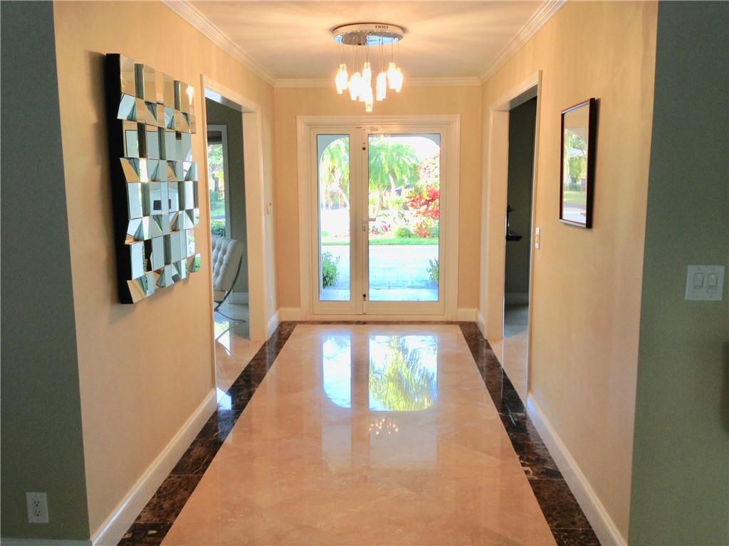 Outstanding, remodeled 4 bedroom 3 bath home on one of the nicest streets in Coral Ridge Country Club. Bright, open floor plan with panoramic impact windows and doors. Smart home system. Brilliant marble floors throughout. Remodeled pool. Thermador stainless appliances. Opaque glass interior doors. Spacious laundry room with storage. Pristine big 2 car garage with closets. Just 5 minutes away from Intracoastal and the beach. It's absolutely ready to move in. You must to see it!