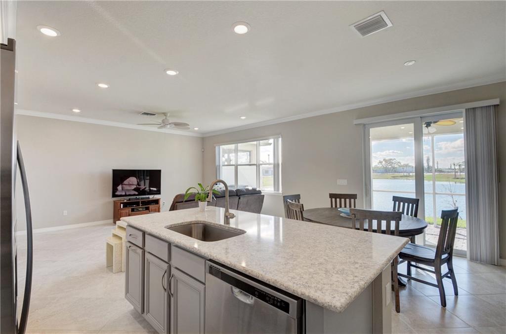 This Raritan Model by Pulte homes has over $36,000 in interior improvements including the screened in lanai! Enjoy the sunsets over the long view of the lake. Also added were 8' doors, crown molding, impact windows, upgraded tile, carpet and Sherwin Williams grey paint throughout. New ceiling fans and blinds have been added. Vivint smart home security and technology is already set up. Includes smart panel, motion detector, seven door and window sensors, doorbell camera, smart locks and smart home thermostat. Upgrades and floor plan in attachments.