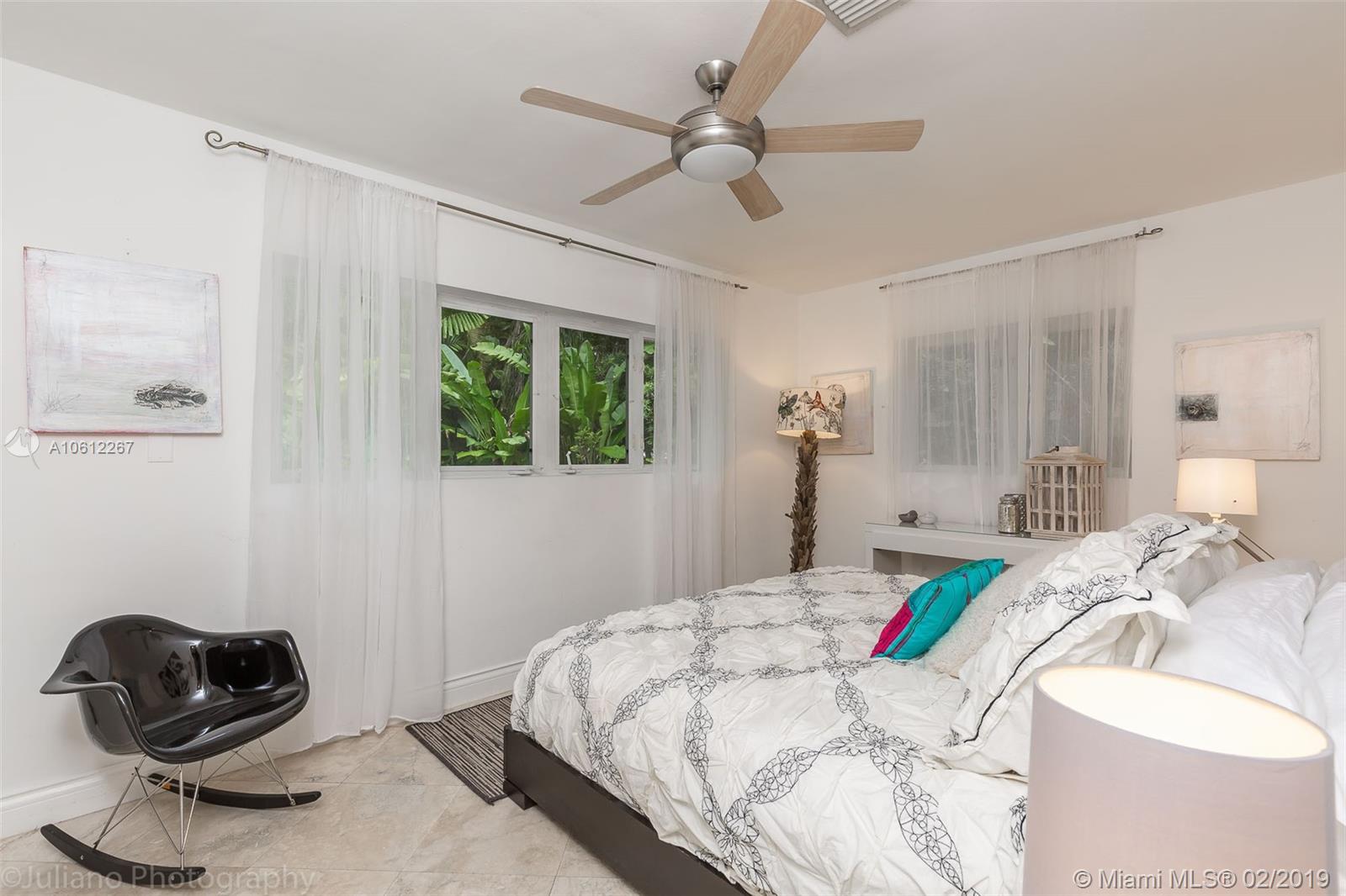 Beautiful Mid-Century Modern home in coveted South Grove neighborhood. Light filled interior spaces w/ white-on-white color palette throughout. Features include stone floors, new marble baths & renovated kitchen w/sleek wood cabinetry, stainless backsplash & high end appliances. Family room w/floor to ceiling windows opens to lush tropical garden w/enchanting Koi pond. Expansive garage w/vaulted wood beamed ceilings has potential to be converted to a luxurious master suite. Close to the Grove village center.