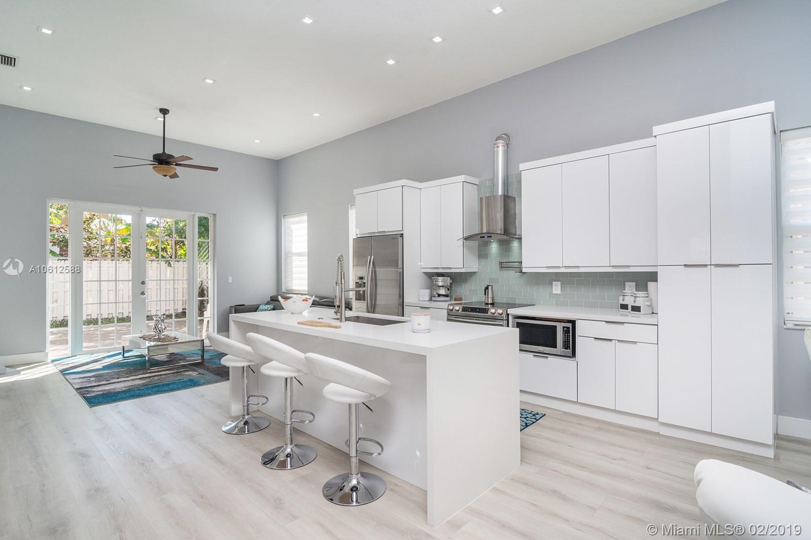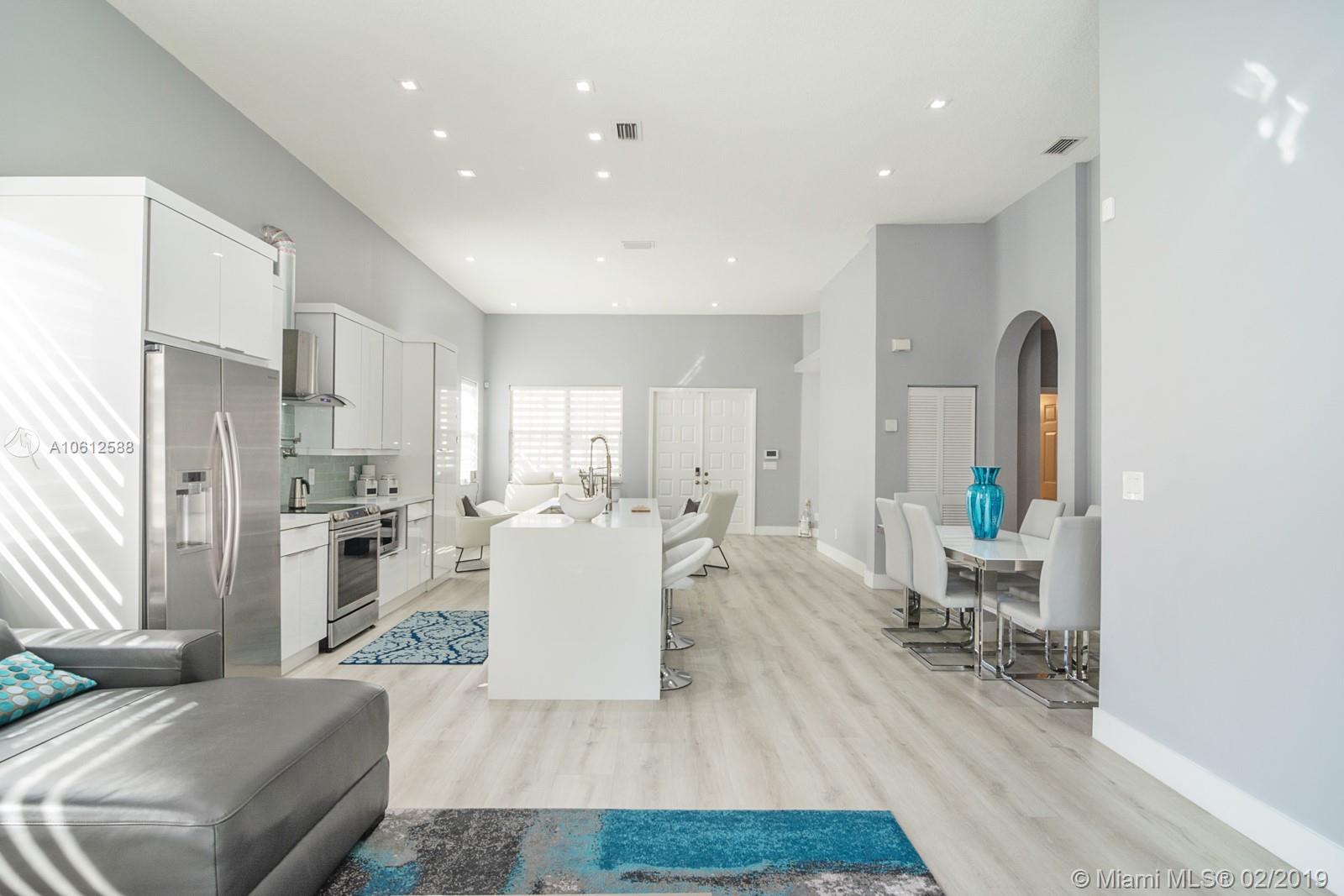 Stunning one-story home located in the private & gated community of Vizcaya. 3 Bed / 2 Bath home has been totally redesigned to feature all open concept living areas, as well as a new modern kitchen complete with a large center island, all new SS appliances, wine cooler & quartz counter-tops. The home is equipped with high-volume ceilings, recessed lighting, accordion hurricane shutters & new engineered wood floors. Home also offers a New A/C, Newer Washer/Dryer, tankless water heater and smart-home components. Best of all the home displays a spaciously fenced & easy to maintain backyard- perfect for any occasion.