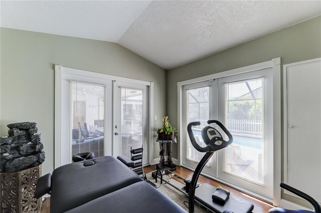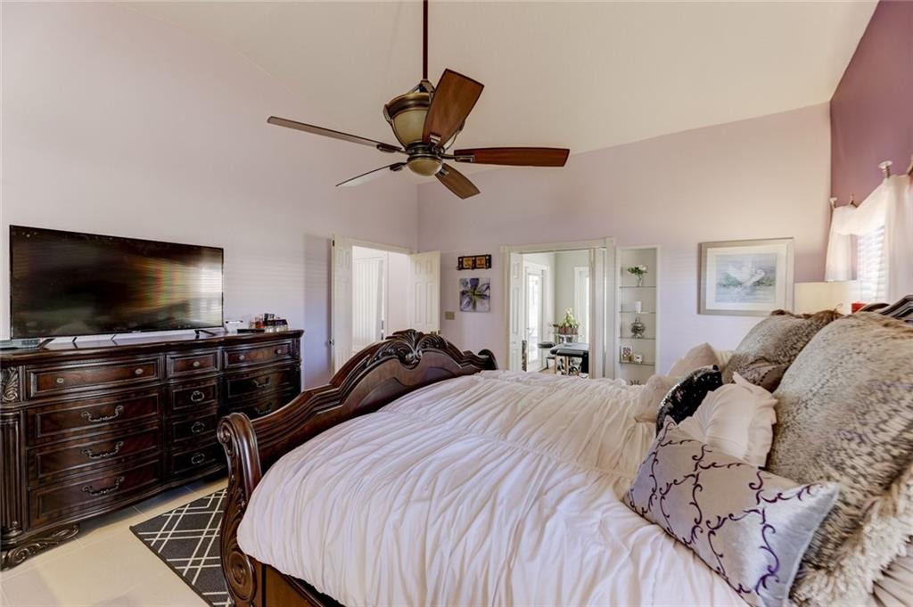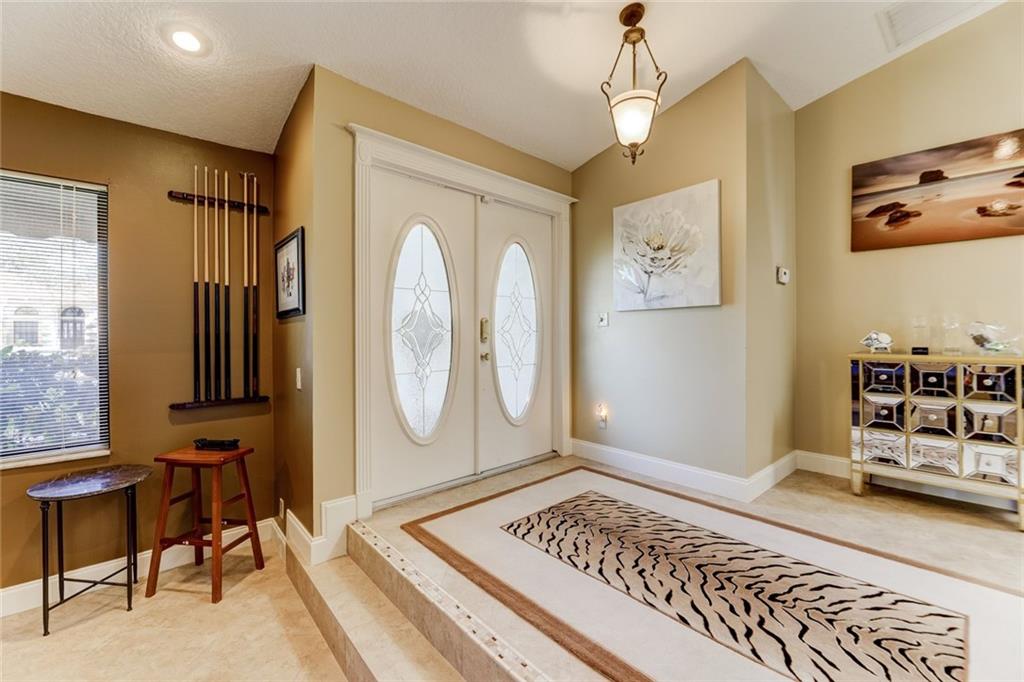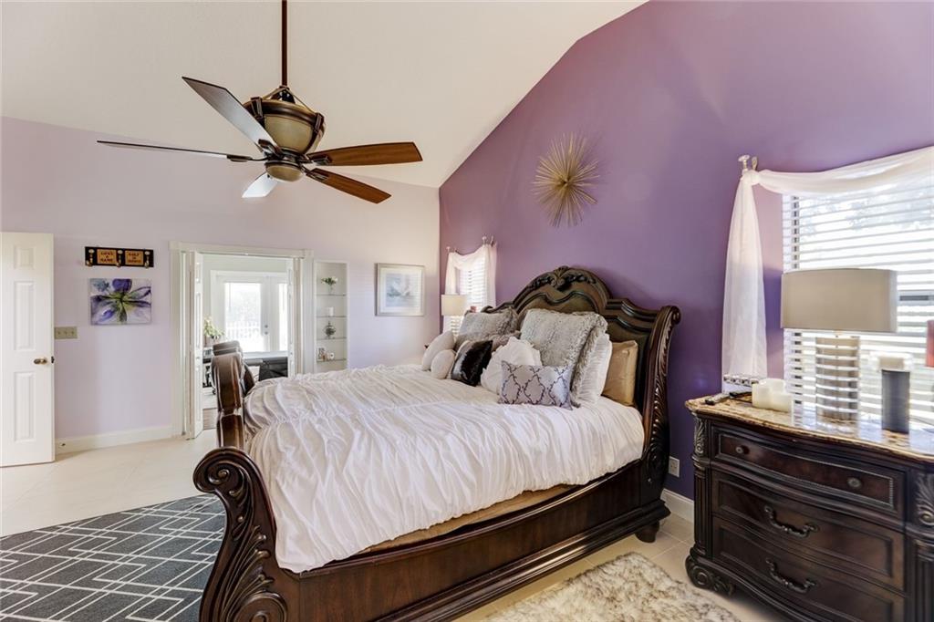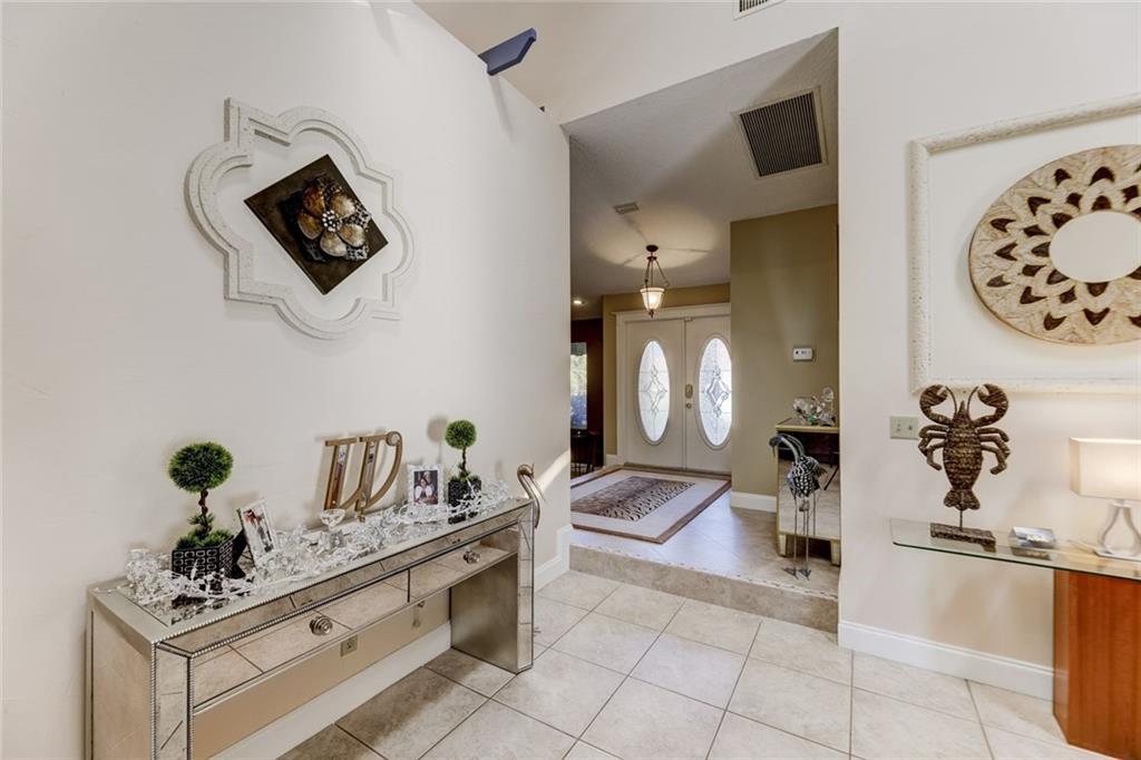 Impressive Contemporary Style Home situated on a Private cul de sac. This 4/2.5 Single Story Tranquil Retreat offers a Fantastic layout which includes a split-bedroom floor plan, Volume ceilings, Large Family room w/fireplace, Eat-in Kitchen w/tons of Cabinet space & New Appliances (2017), Large Owner's Suite w/his & her closets, updated bath & a bonus room perfect for an Office/Exercise Room/Nursery/Meditation Room. Add'l features include New Tiled floors & a Gorgeous Remodeled Cabana Bath (2017). The outside Oasis provides a play area adjacent to the screen enclosure, a Beautiful Sparkling Heated Pool, an Outdoor Shower (hot & cold water BRAND NEW 2018) AND an Outdoor Kitchen w/ a bar, Perfect for Serving and Entertaining! This Fantastic Home is in a Premier Guard Gated Golf community!