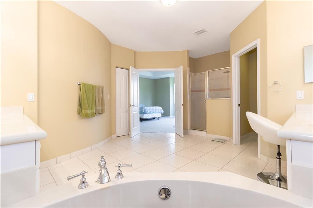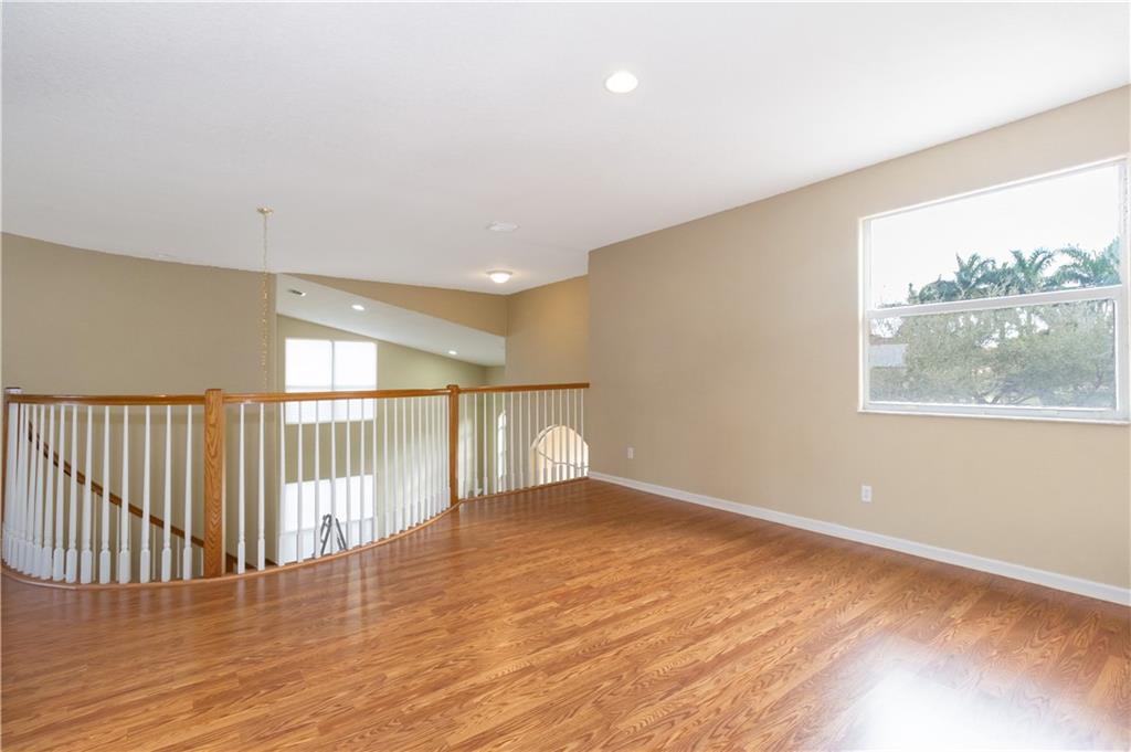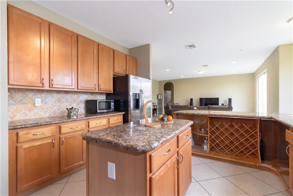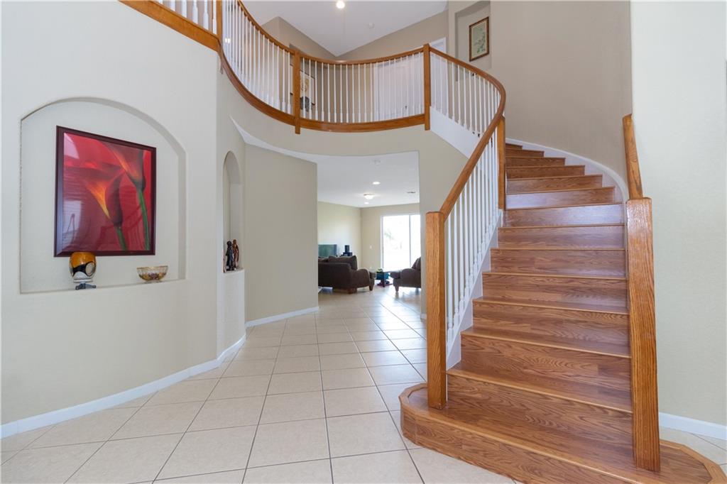 As soon as you walk in you will be greeted by the 2 story high ceiling and curved staircase which gives you the feeling of prestige. This home features tile flooring on the first floor and wood laminate flooring on the stairs and upper level. The large gourmet kitchen features granite countertops, new stainless steel appliances, snack bar and breakfast area. 1 bedroom and full bath are on first floor perfect for an elderly family member. The second floor features a large loft, master and 3 additional bedrooms. The master bath features his and hers vanities, large soaking tub, and a huge shower. The backyard is the perfect place to relax after a long day at work with beautiful lake views. Plenty of room to build a pool, backyard is fully fenced! New A/C, hot water heater, washer & dryer.