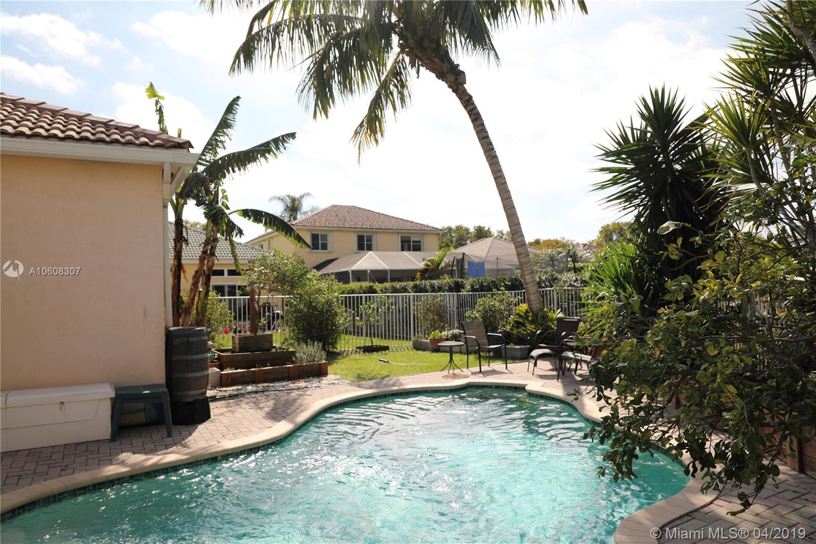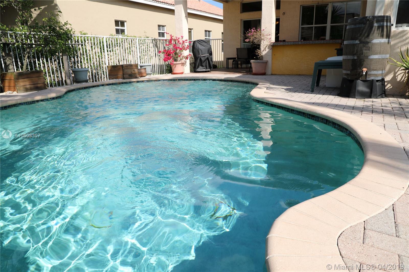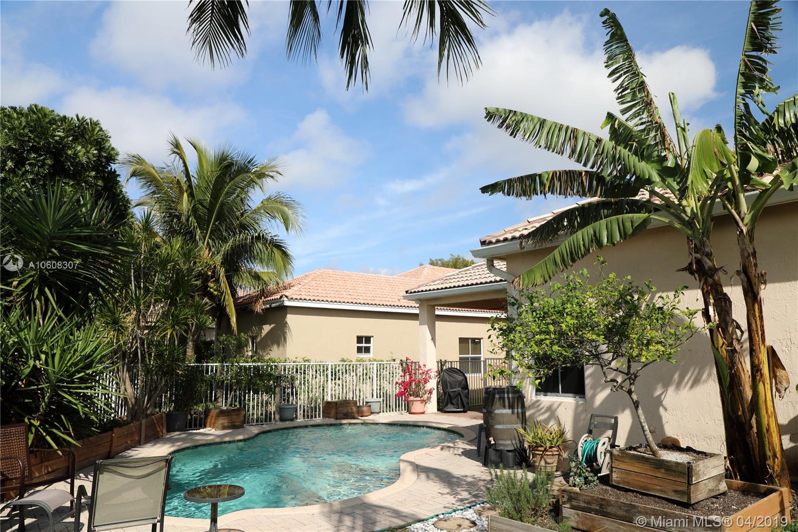 Florida Pool Home with beach style backyard in The Ridges, covered patio with bar. 3 beds, 2 bathrooms, palm trees, fruit trees, rainwater irrigation system, butterfly garden. Appliances have maintenance protection plans, crown moulding, new AC, fenced backyard. All the best Weston schools at walking distance: Everglades Elementary, Falcon Cove Middle School and Cypress Bay High School. Showing Time, call me and enter 4322 Foxtail Ln on YouTube for video and/or Google Maps for Virtual Tour. Moving date: March 25th.