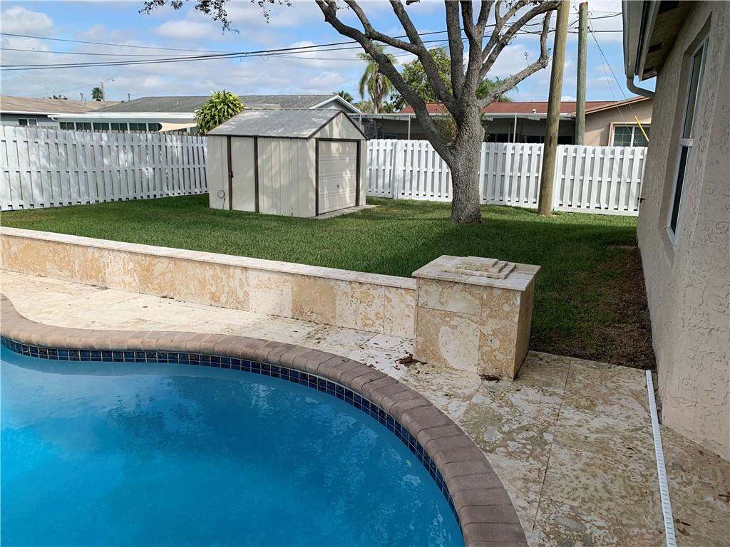 IMMACULATE UPDATED 3 BEDROOM 2 BATH HOME WITH FRENCH DOORS LEADING TO PERMITTED ADDITION- MOTHER IN LAW SUITE WITH ONE BEDROOM, BATH, LIVING AND DINING AREA WHICH IS HANDICAP ACCESSIBLE. THUS THIS IS A FOUR BEDROOM 3 BATH HOME WITH UPDATED KITCHEN AND BATHS, BEAUTIFUL FREE FORM POOL HEATED SALT WATER, & HAS CORAL ROCK DECK. LOVELY PORCELAIN TILE, AND LAMINATE THROUGHOUT THE HOME. IT ALSO HAS IMPACT WINDOWS AND A SHED. VERY SPECIAL HOME WHICH HAS BEEN WELL CARED FOR.