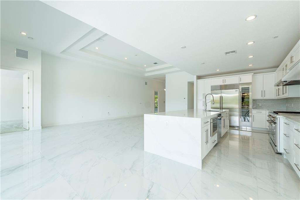 Brand new custom home with over 250,000.00 in upgrades. One of a kind never built before this way! Modern, S2 model! Ceilings have been raised, home redesigned, the master is an ensuite, custom closets enlarged, all w a 4 car garage. Stunning 4 bedroom, 3 baths, upgrades everywhere. Very open, airy floorplan, single story. Beautiful top of the line chef's kitchen, large island, cabinets to ceiling, quartz, wine refrig. and more. Upgraded pool and deck, white marble pavers. Beautiful sunsets overlooking the pool, clubhouse, water, and golf. This home has it all! Beautiful one story brand new, never lived in. All impact window and doors. Full one-year builder's warranty.