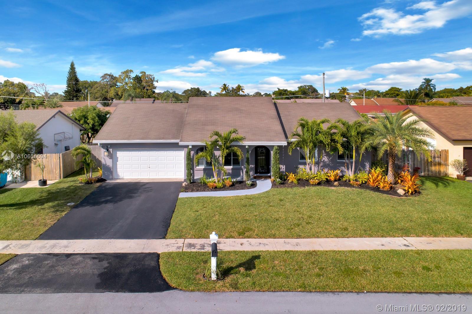 Shows like a model house with all the custom upgrades! Completely remodeled, beautiful 4/2 pool home with open floor plan, 32 x 32 tile throughout, gourmet kitchen with stainless steel appliances. New AC, electrical panel, pool pump and deck. Nest thermostat, water filtration system, power transfer switch and connection for generator. Fully fenced in backyard for added privacy. No association fees & centrally located within minutes of Sawgrass Mills Mall, schools, parks, shopping and places of worship.