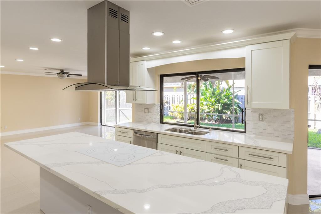 BRAND NEW ROOF! Designed w/IMPACCABLE QUALITY-TOTALLY REMODELED-PROFESSIONALLY LANDSCAPED-4BD-2.5BA-2 CAR GARAGE-2,600 SQ FT total-FULLY FENCED-OPEN & SPLIT FLOOR plan home w/CIRCULAR DRIVEWAY-LARGE CORNER LOT in a HIGHLY DESIRABLE area w/NO HOA. NEW 24X24 PORCELAIN TILE-NEW PAINT INSIDE & OUT-NEW WATER HEATER-NEW BATHROOMS w/QUARTZ TOPS-CUSTOM LAUNDRY ROOM W/GRANITE. ONE OF A KIND kitchen w/NEW WOOD CABINETS w/SOFT CLOSE DRAWERS, complemented by NEWLY installed QUARTZ counter tops, NEW HIGH-END SS APPLIANCES, convection WALL OVEN w/BUILT-IN MICROWAVE, EURO STYLE EXHAUST, LARGE CLOSET PANTRY & OVERSIZED CENTER ISLAND w/STOVE TOP. SPACIOUS MASTER SUITE has EVERYTHING you WISH FOR: HUGE WALK-IN CLOSET, SLIDERS to LANAI, Master Bath w/HIS & HER QUARTZ top vanities, a large ROMAN shower.