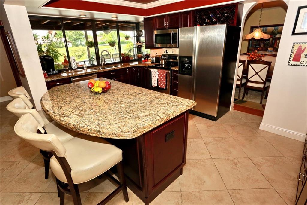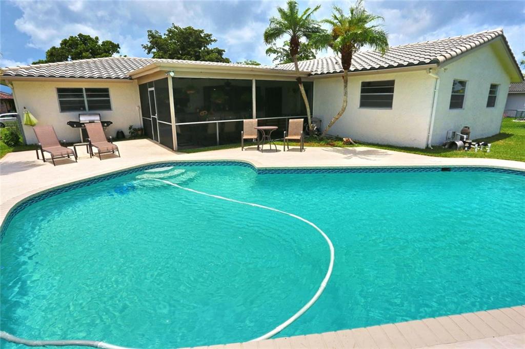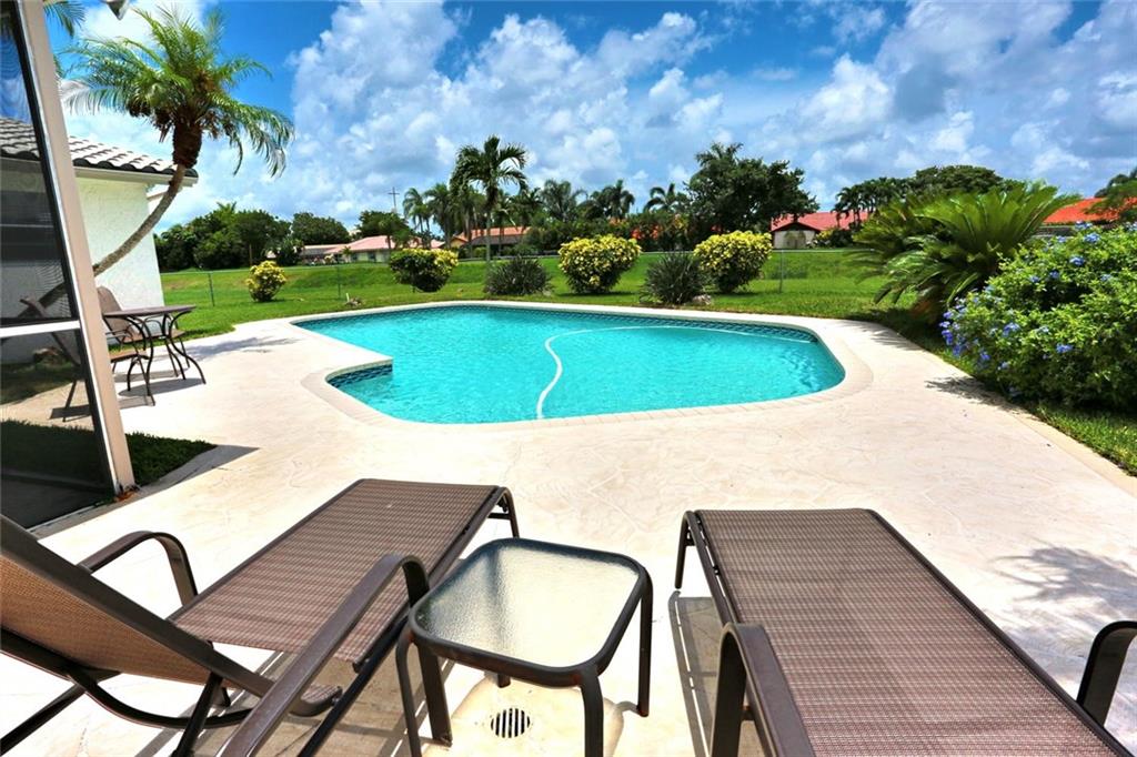 Paradise awaits in this rarely available 5 bedroom, triple split, waterfront home in desirable Ramblewood. Top schools; centrally located; great subdivision; NO HOA!! Updated kitchen w/cherrywood cabinetry, granite counters, S/S appliances and XL island. Built in bar; tile/laminate; brand new flooring in secondary bedrooms. Fenced in yard boasts a screened, Euro tile patio, oversized pool and tranquil canal/garden view. Expansive grassy area beyond is perfect for playing sports and entertaining. Spacious bedrooms, lots of storage/closets; several newer appliances; new exterior paint.
