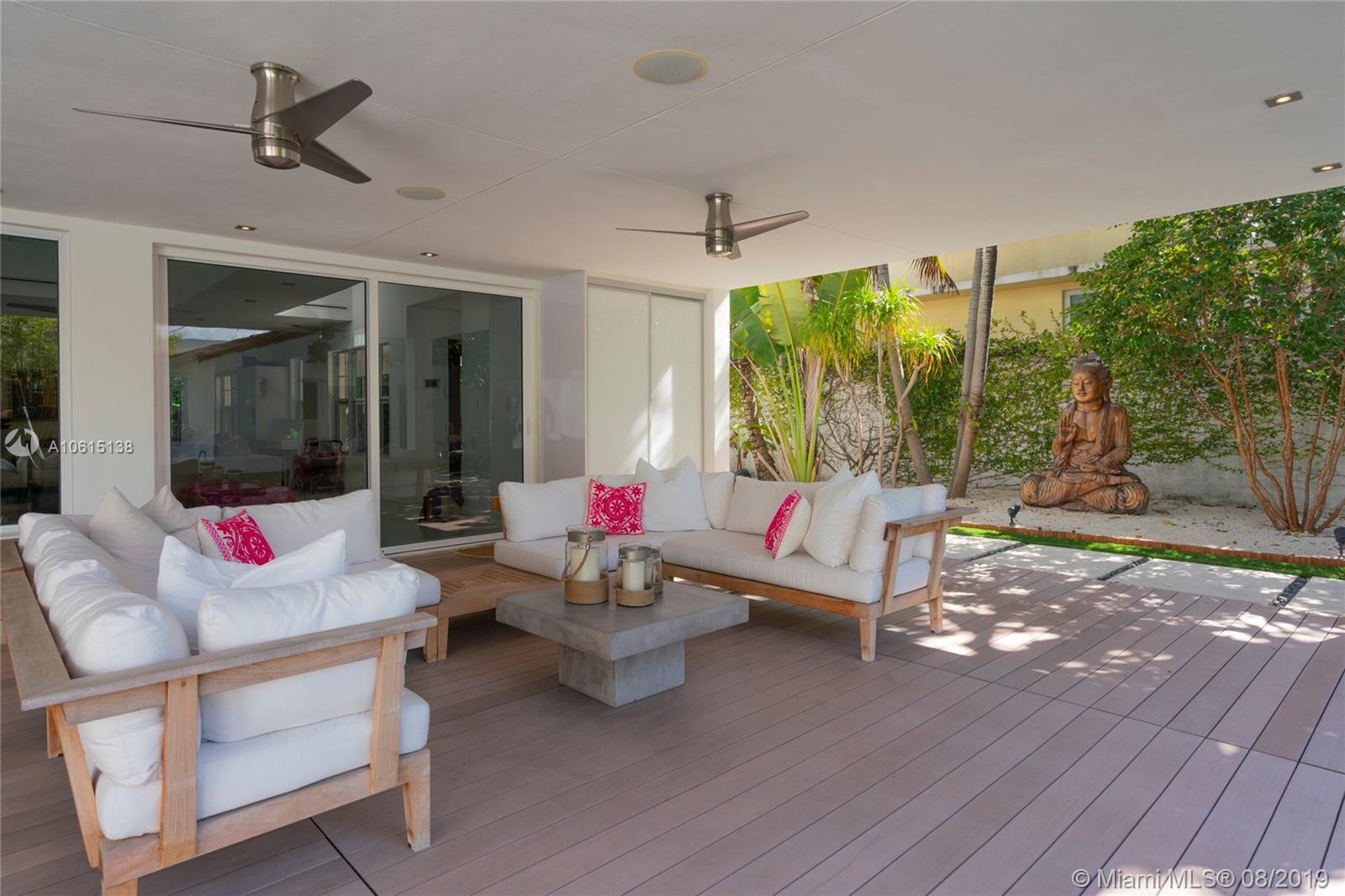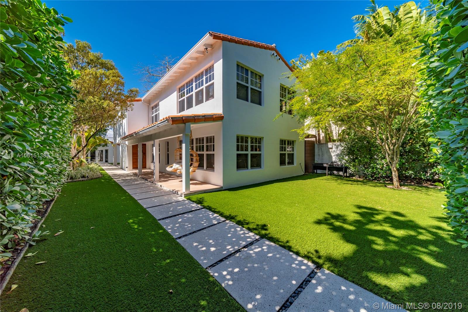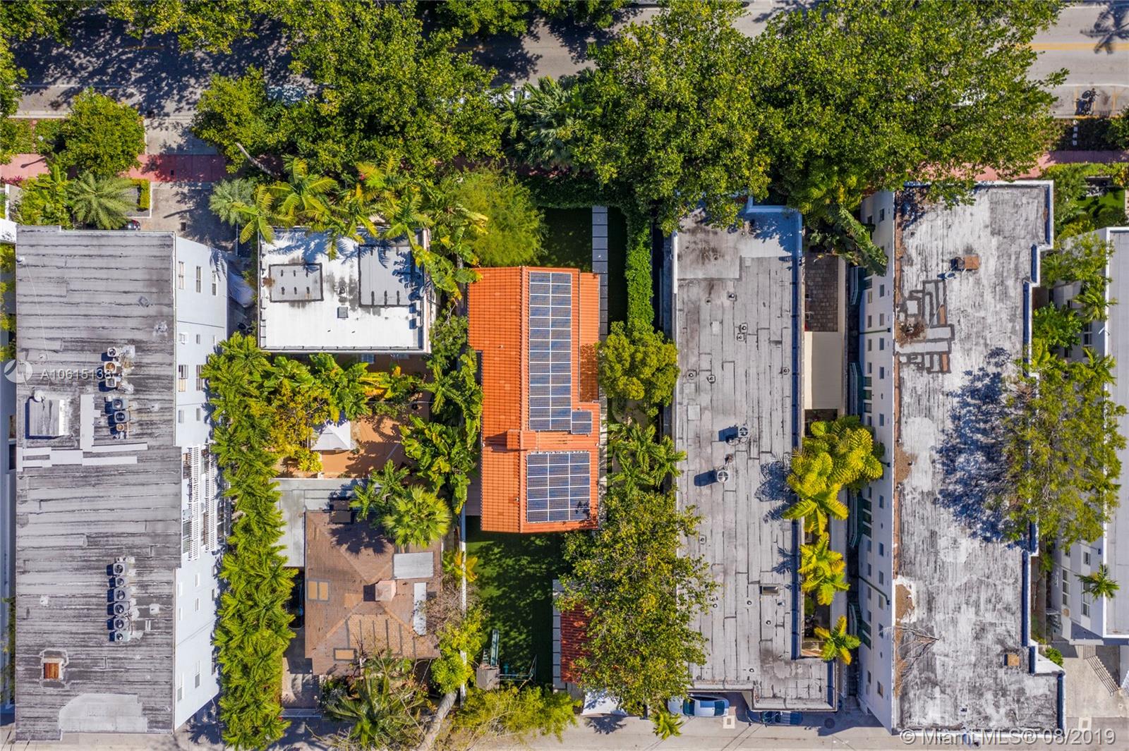 Nestled in Miami Beach’s South of Fifth (SoFi) neighborhood, this fully-renovated 4br, 3.5ba home is a slice of paradise all its own. Surrounded by lush landscaping, this lot is comprised of a main house & a guest house. Powered by solar energy, this home is energy independent with water-filtration system, and a car-charging station. Main house contains an open floor plan, a kitchen outfitted with Miele appliances & Grohe and Duravit fixtures. Guest house has a bedroom, which could convert an office or studio. Private outdoor space with shower makes this a true urban retreat. Just footsteps from the beach and the bustle of South Beach, it is a tranquil perch in a neighborhood of prime real estate. The lot is zoned for a multifamily dwelling, so buyers can build up to four stories.