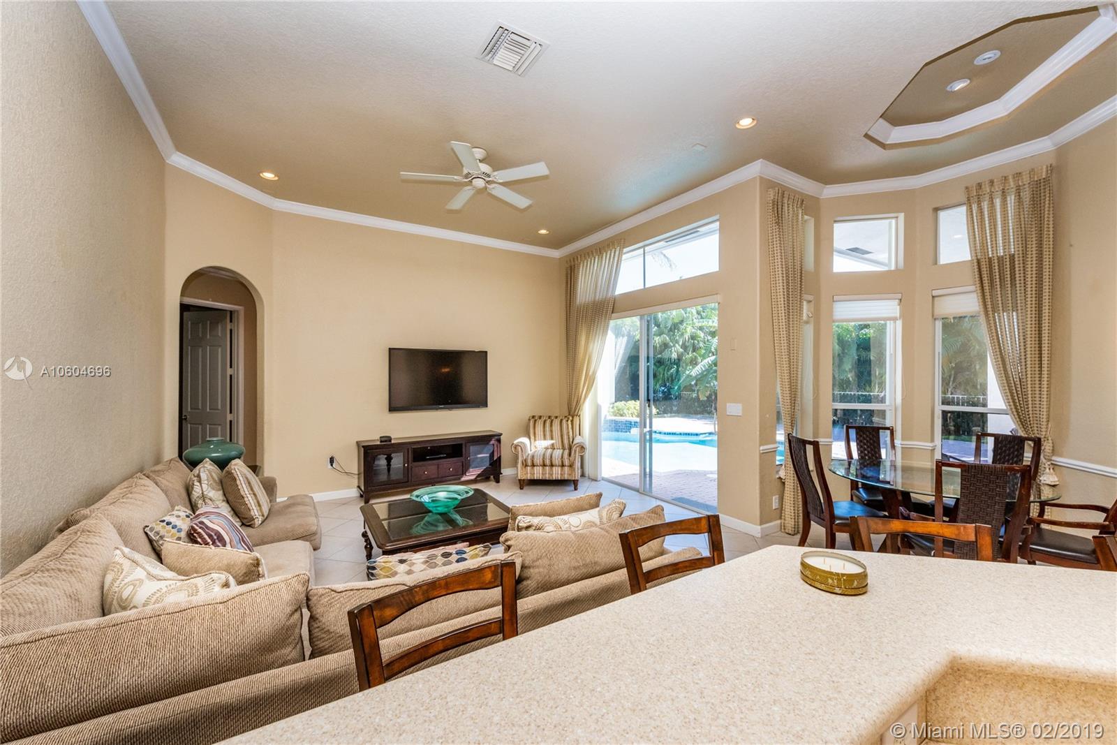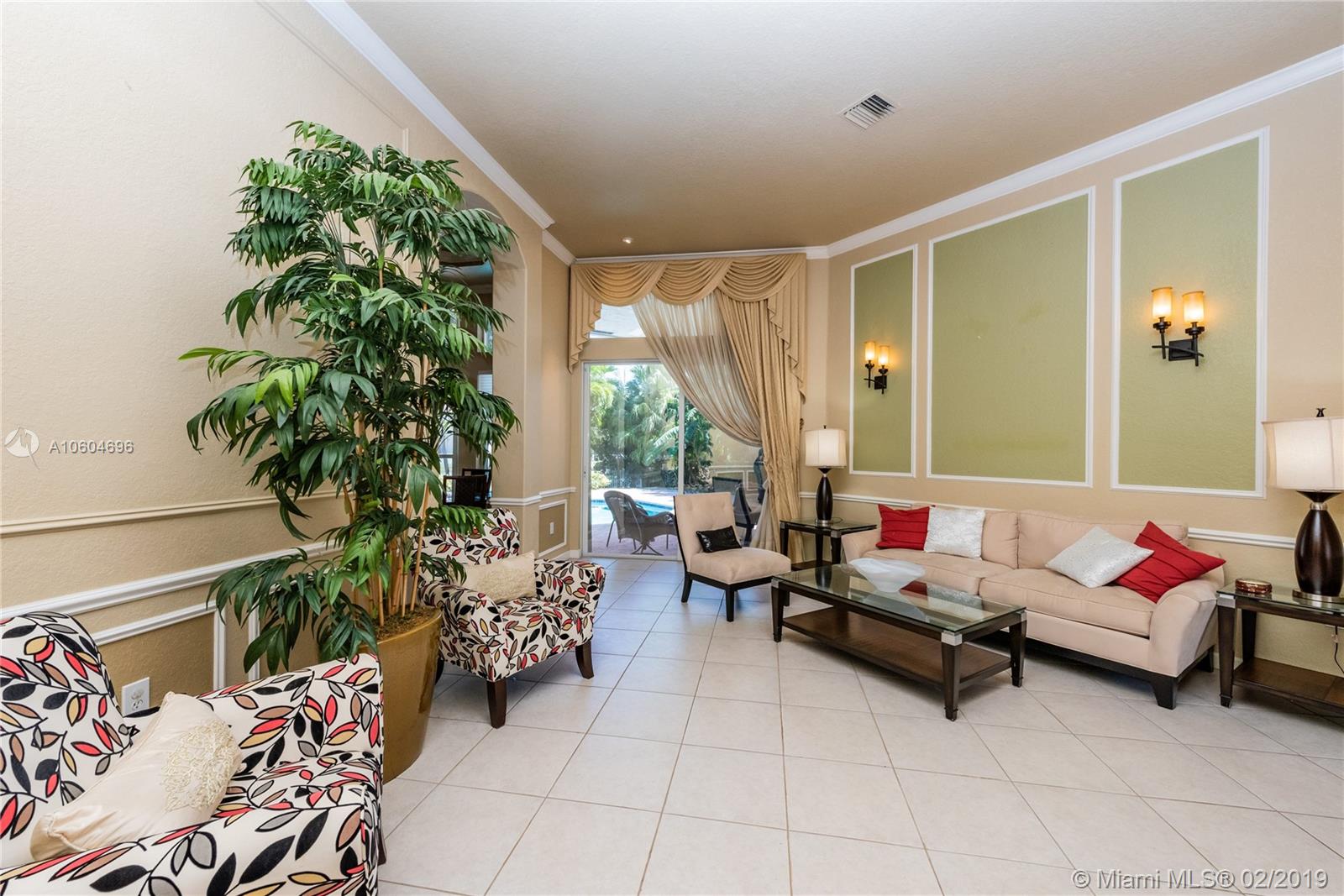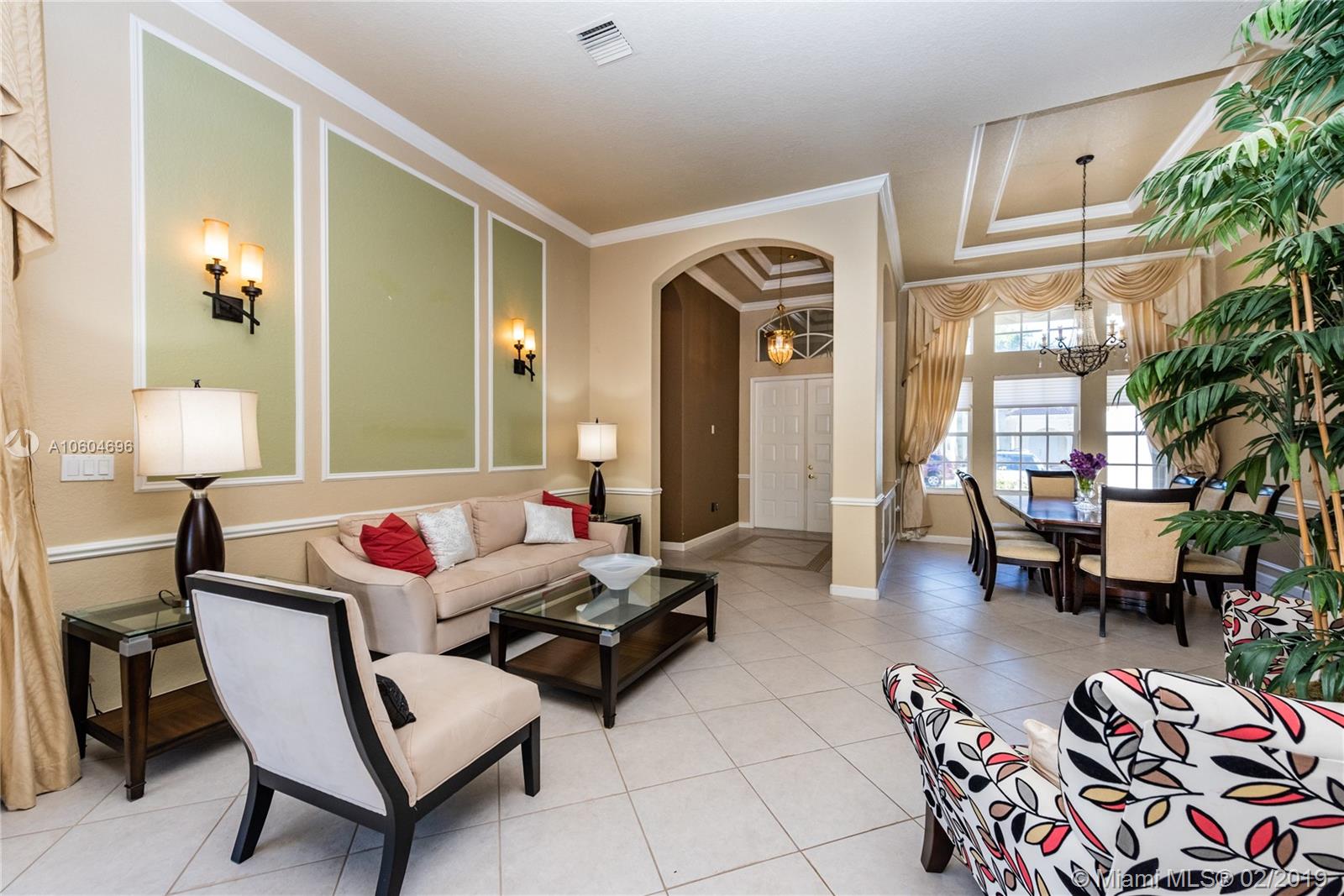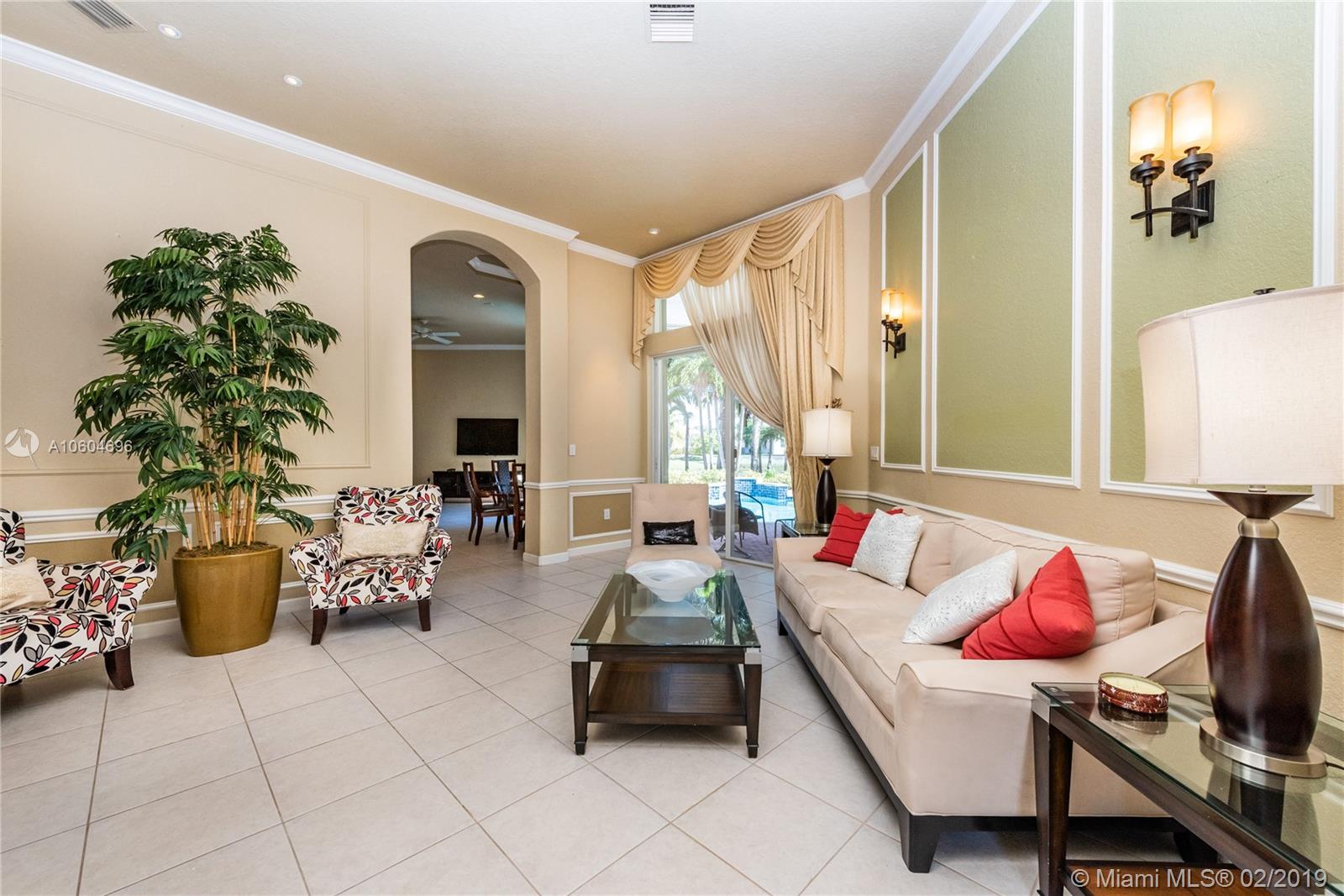 Beautiful Rubens Model home, located at Grand Isle at Sunset Lakes. This 5 bedroom, 3 bathroom pool home features a great lake view. Lots of upgrades. Custom window treatments, crown molding, upgraded tile flooring. Beautiful tropical landscaping with gorgeous pool and patio area, overlooking a peaceful lake view. Move in ready.