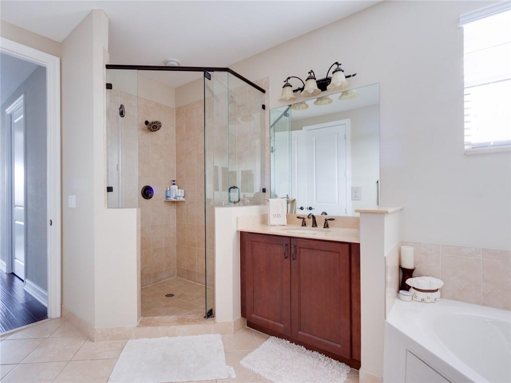 Built 2010 and recently upgraded even more, check out this Gorgeous 5 beds/4 full baths Pool home in Parkland Reserve! Spacious lot! This home features TWO master suites with All bedrooms upstairs, wide hallways, custom walk-in closets, high def lam. flooring upstairs and down, formal dining, breakfast area, and kitchen bar seating, large pantry, foyer entry, great room and living room, separate laundry room, new appliances (6mos), new AC (3mos), freshly painted inside (6mos) exterior (9mos), impact windows and doors, 3 car garage with extra overhead storage! Pretty, private, and fun, this home has a Sunny, heated salt water pool w/ Fire feature, screened back dining patio, extra sun shade that automatically closes during high winds. Also close to walking trail that leads to elem school!