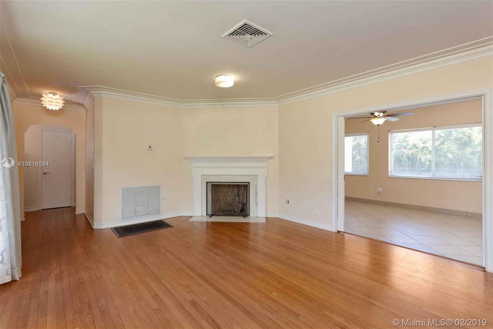 BEAUTIFUL CORNER LOT IN MIAMI SHORES. BIG WALLED YARD WITH POOL. 4 BEDROOMS, 3 FULL BATHS AND INSIDE LAUNDRY/STORAGE ROOM. WOOD AND TILE FLOORS. WOOD BURNING FIREPLACE IN LIVING ROOM. DINING ROOM OPENS TO THE KITCHEN AND LIVING ROOM. LARGE FAMILY ROOM OVERLOOKING THE POOL. BIG MASTER BEDROOM. IMPACT WINDOWS, ALARM SYSTEM, CENTRAL A/C. MOVE IN CONDITION.
