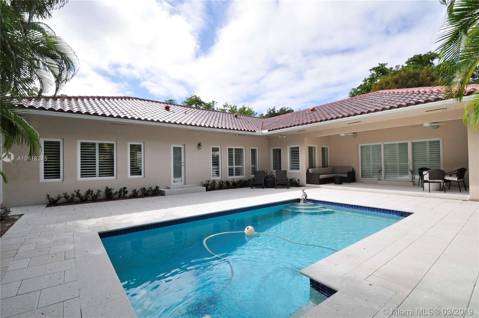 Magazine quality & extensively remodeled newer built home in the "heart of Coral Gables". This 11,300 sq. ft. corner lot is a stunner! With 4 bedrooms (split-plan), 3.5 baths, open tropical pool, & 2-car side-entry garage. New roof, new impact windows & doors, new gorgeous kitchen, new bathrooms, new porcelain tile floors, new fixtures, new recessed LED lighting throughout the entire home & remodeled pool and patio are just a few of the updates you will enjoy. Tall ceilings welcome you in the home & open to the formal living room, formal dining room, state Of The Art kitchen with quartz counters, wood cabinetry, Thermador appliances, family room with an in home theatre. Master bedroom suite is oversized with the most luxurious bathroom you have ever seen. This home is a show stopper!