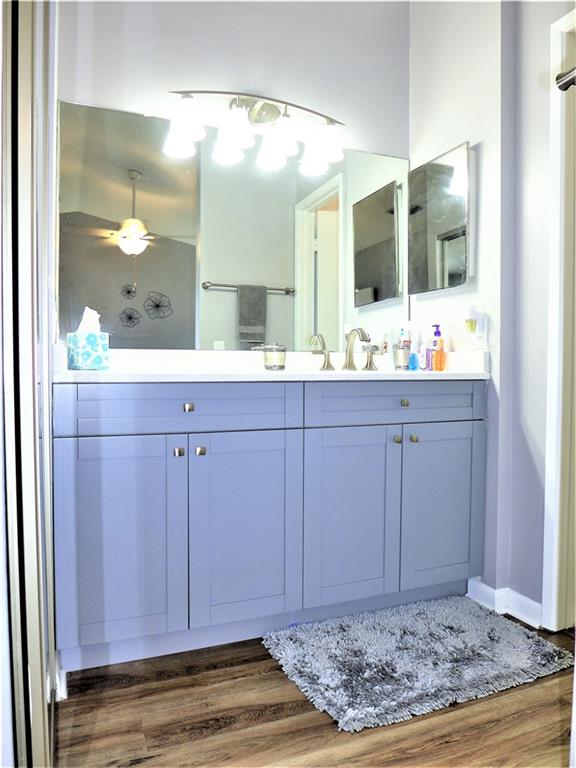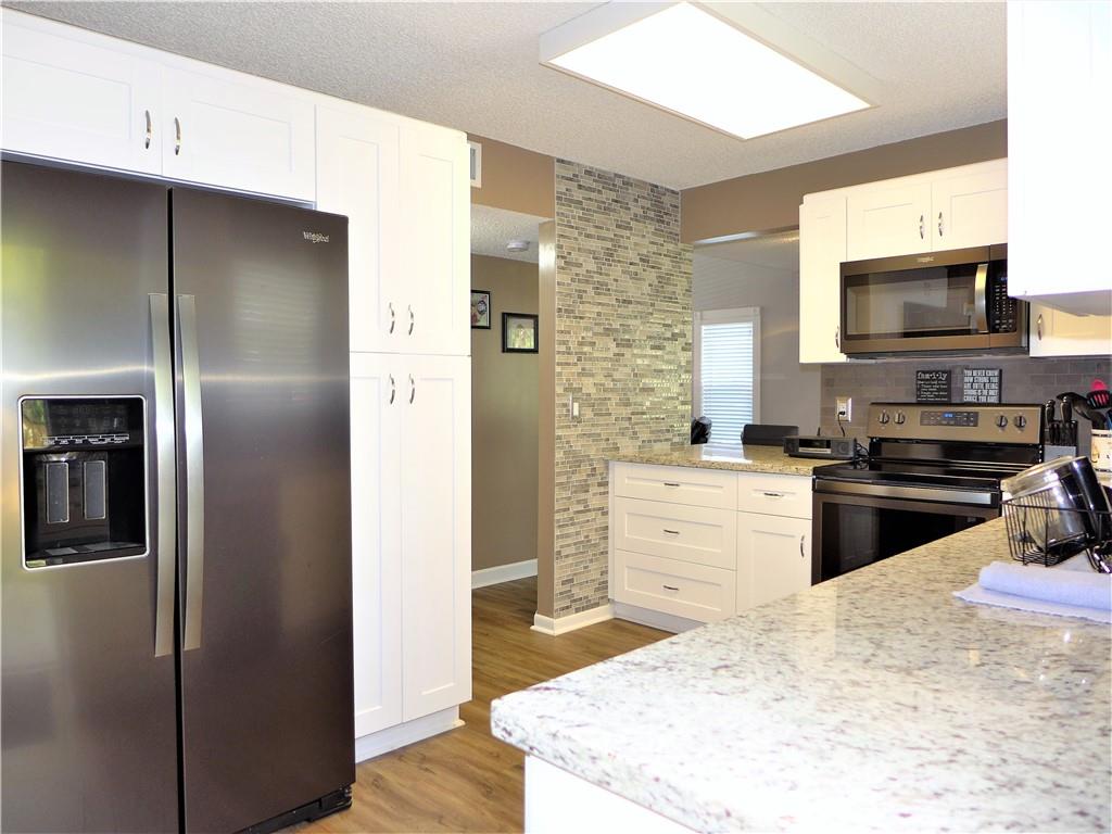 Stunningly remodeled 3 bedroom 2.5 bath with high-end laminate flooring throughout the entire home, new baseboards & paint, remodeled bathrooms with corian counters & shaker cabinets! Huge living area & dining leading to designer kitchen boasting gray subway tiles, modern cabinets & counters, stone accent wall, pantry & new black stainless steel whirlpool appliances! 2nd Floor boasts large master w/ his & hers closets & beautiful ensuite! 2nd & 3rd bedrooms equally spacious sharing an oversized bathroom! Located on a cul-de-sac this large corner unit boasts accordion shutters, a fenced yard, covered & screened patio & ample parking! Well maintained Woodgate features community pool w/ spa, tennis courts, playground, A+ schools, is adjacent to Oscar Wind Park & close to shopping & Sawgrass!