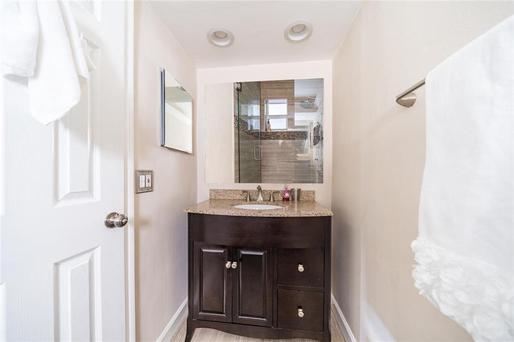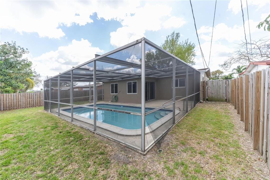 Exterior just repainted! Modern brown neutral colors!!! No HOA!! Upgraded & charming 2/2, can be converted to a 3 bedroom!! Gas stove, great for chefs! Gas AC & water heater. Newer AC. Hurricane horizontal sliding windows & garage door. Front door & back sliding door are not, but shutters in garage for them. Gas range / water heater/dryer – hard to find in FL! Pool, screened in. Fenced in backyard (wood fence w/ gates on both sides). Stainless steel appliances in kitchen, plus washer/dryer in garage. Ceiling high cabinets in kitchen & giant sink. Master bath: LED color changing lights in the crown molding (flip both switches when you are in there) / Tigers eye stone floor / Shower tower with jets. Stone tile/ledgestone mosaic.