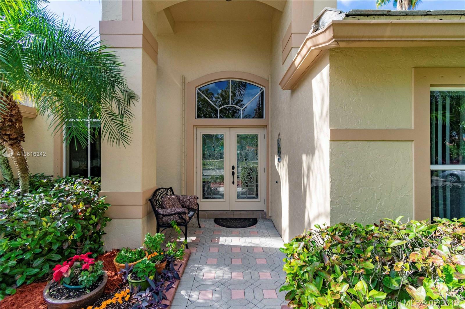 There is No Substitute for Style !! An tropical pool oasis home located at The Lakes of Weston. A marvelous outdoor ambiance with exquisite landscaping, a towering pool screen enclosure, extensive pool deck area to fill your guest for super parties and get togethers, This property is situated on large rare lot size of 11,300 Sqft at beginning of cul-de-sac, This beautiful 1 story split floor plan is ideal that works for all families, family/tv room, living/dining room combination area, nook area, office room, 12' ceilings, Updated kitchen w/vast cabinetry, wood flooring in master & family room, zoned for A+ schools: Eagle Point Elementary, Tequesta Trace Middle, Cypress Bay High School. Gated community, Easy access to highways for commuting, nearby parks and shopping. Look No Further.