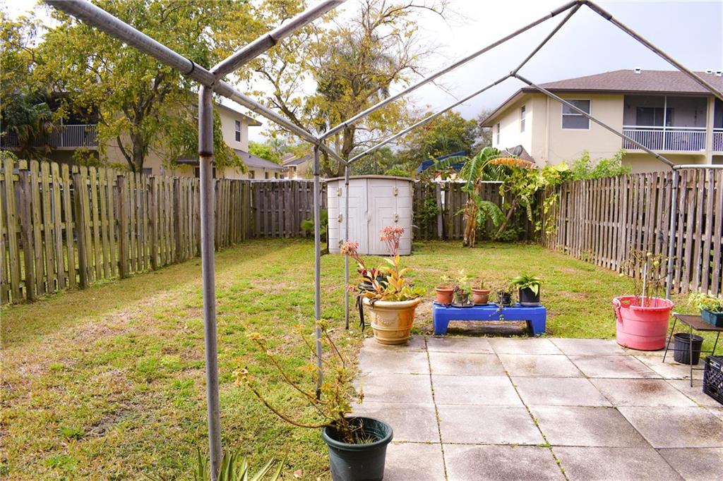 This beautiful Sunrise Townhome has one of the largest corner lots in the development. Lovely garden view. Step outside and enjoy your spacious fenced in yard and patio. Huge master suite with room for you to relax and retreat in comfort. The bedrooms both feature walk-in closets. Extra room downstairs can be used as an office, sitting room, exercise room you decide. Home is tiled throughout with a newer roof, A/C and hot water heater. Hurricane Shutters with a storage shed in the backyard. Excellent location close to shopping, restaurants, and recreation. Minutes away from Sawgrass Mall. FHA and VA allowed and best of all NO HOA!