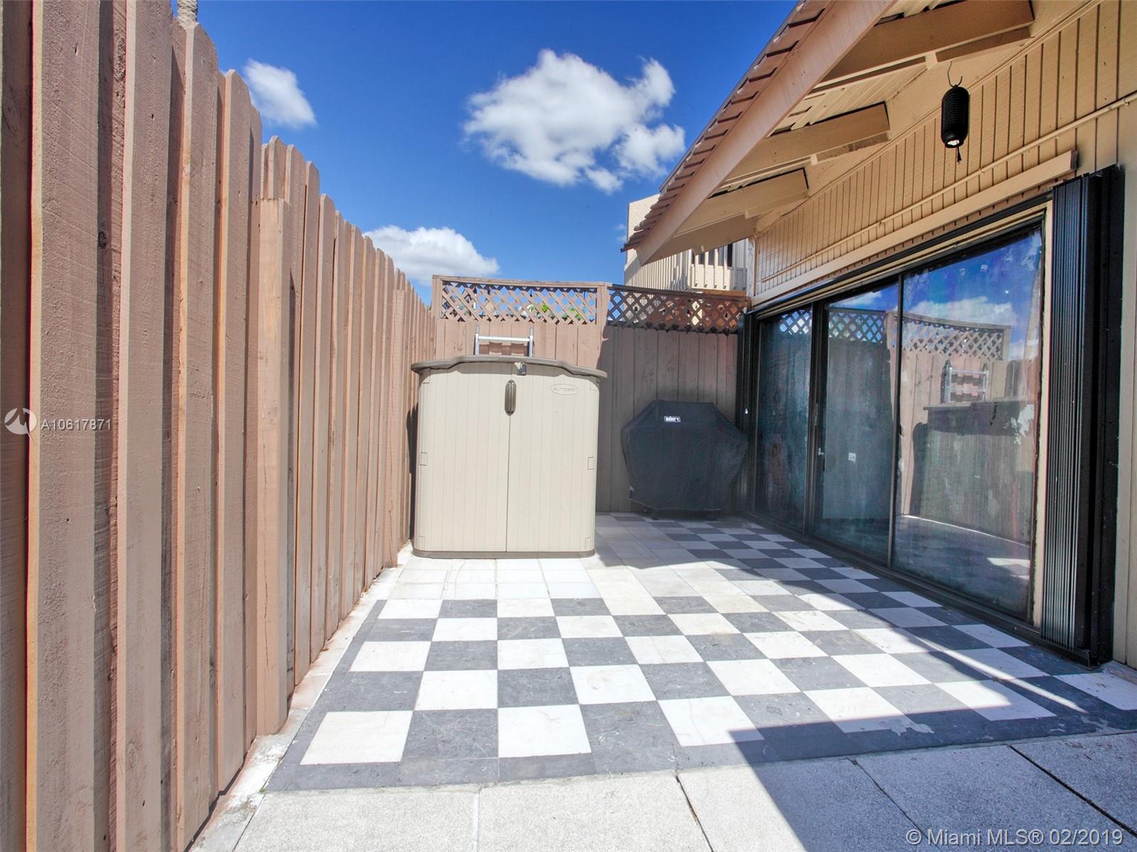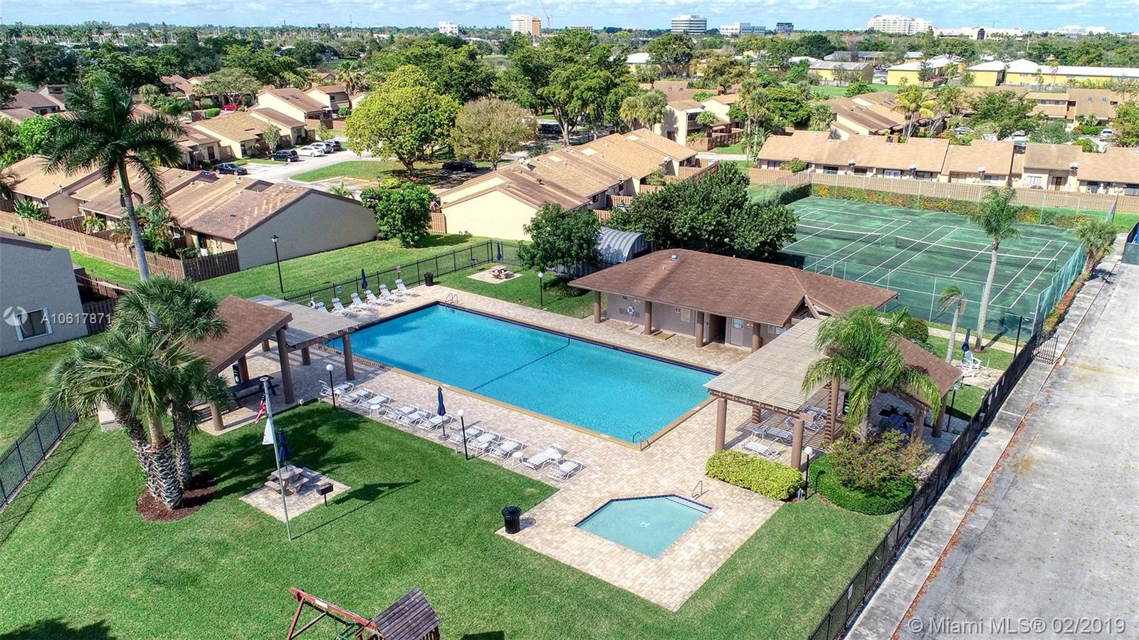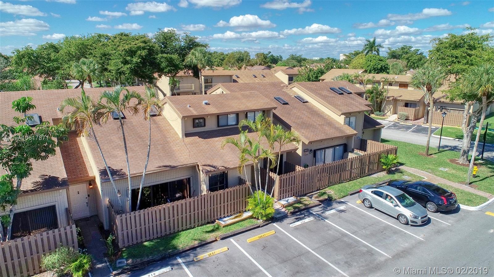 Location! Location! Location! This stunning two story townhouse sits in the epicenter of everything! Black and white Marble floors greet you throughout the first floor into the spacious living room. Modern feel with black glass walls and a vaulted ceiling with 2 skylights. Property features; Nest Thermostat, Stacking LG W/D, Accordions Shutters/Panels, Fenced in back patio, 2 Outside Storage Sheds Included, A/C Replaced 2011, NO RENTAL RESTRICTIONS! FHA APPROVED! Clubhouse/HOA includes: Pool, BBQ area, Playground, and Tennis Courts, Easy access to all highways (595/95/75/TPK), Major Supermarkets and many Restaurants with easy access (Tower Shops/Fountains), Schools and Universities right around the corner (Nova/BC/FAU), Newly renovated Golf Course backs the development. Priced to Sell.