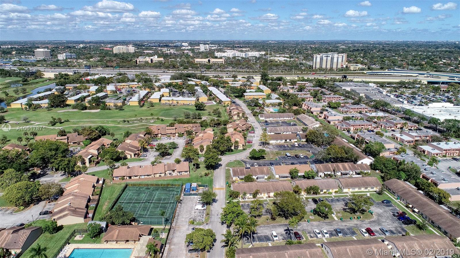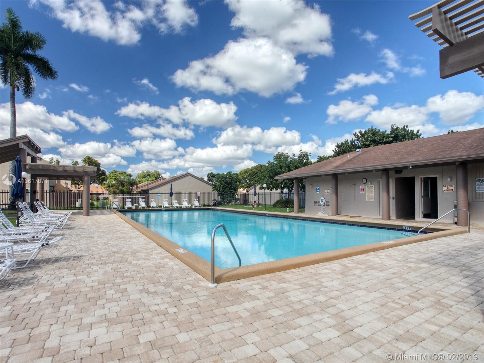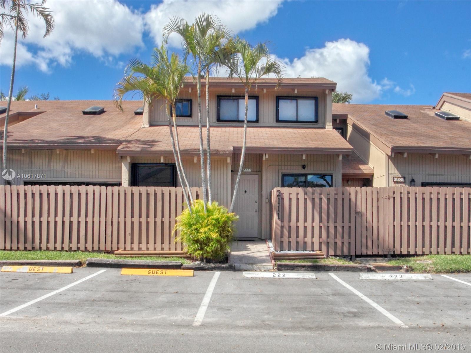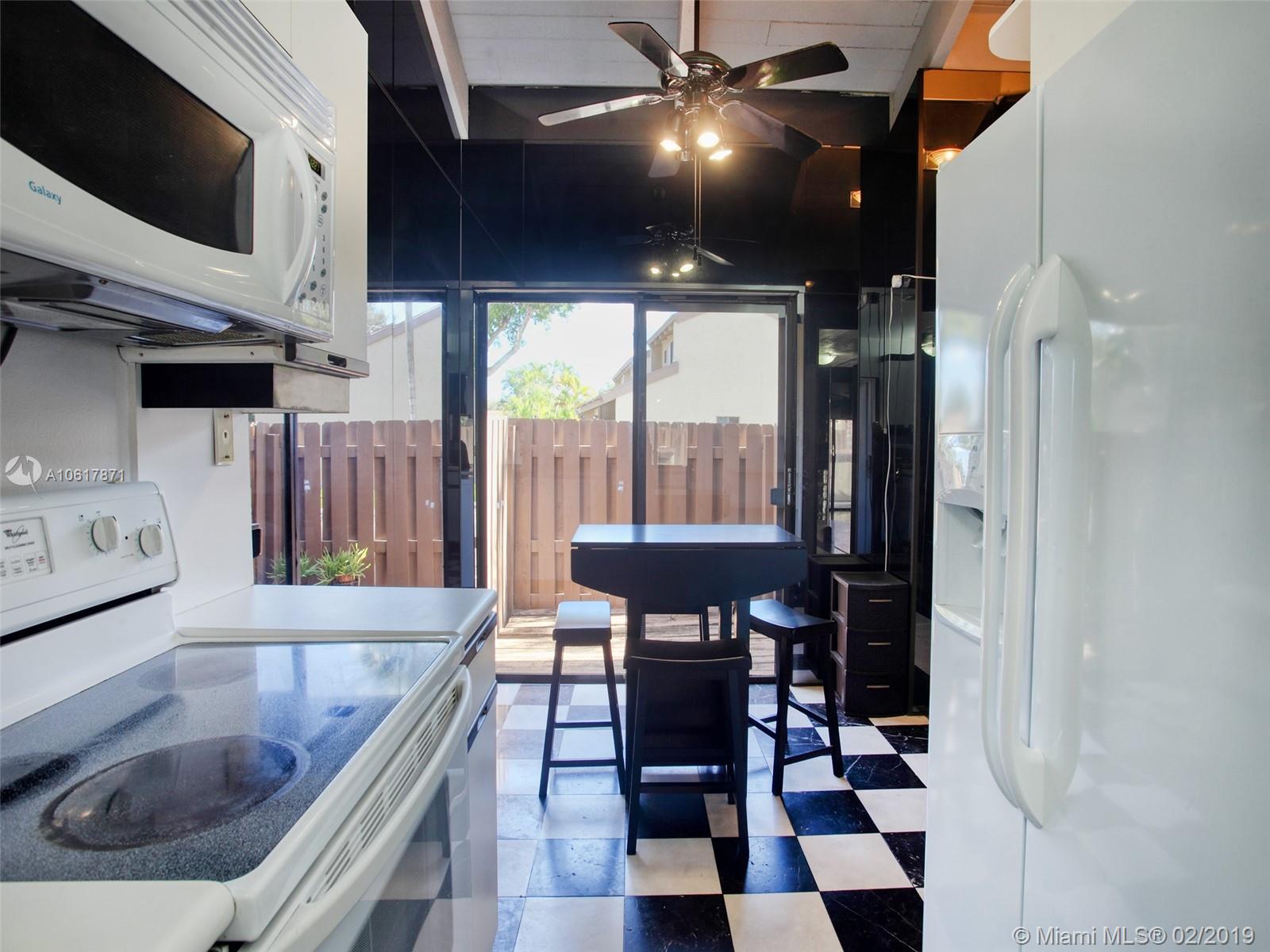 Location! Location! Location! This stunning two story townhouse sits in the epicenter of everything! Black and white Marble floors greet you throughout the first floor into the spacious living room. Modern feel with black glass walls and a vaulted ceiling with 2 skylights. Property features; Nest Thermostat, Stacking LG W/D, Accordions Shutters/Panels, Fenced in back patio, 2 Outside Storage Sheds Included, A/C Replaced 2011, NO RENTAL RESTRICTIONS! FHA APPROVED! Clubhouse/HOA includes: Pool, BBQ area, Playground, and Tennis Courts, Easy access to all highways (595/95/75/TPK), Major Supermarkets and many Restaurants with easy access (Tower Shops/Fountains), Schools and Universities right around the corner (Nova/BC/FAU), Newly renovated Golf Course backs the development. Priced to Sell.