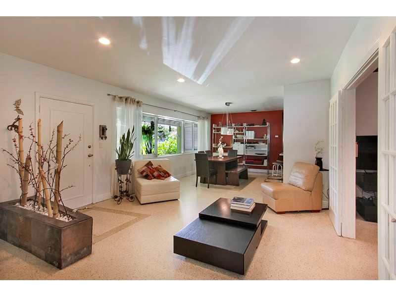 Escape to ultimate seclusion in this edgy and tropical courtyard-style home! Located on a quiet street, this home offers privacy & a crisp, modern style. Distinctive in-line terrazzo floors throughout, impact windows, updated baths & kitchen. All rooms ov erlook a beautifully landscaped front courtyard. Open concept kitchen w/ quartz counter & SS appl. Master is a great size with en-suite bath. 2nd & 3rd bedrooms share Jack-and-Jill bath. Fully-fenced yard w/ room for pool. 1-car garage for extra storage