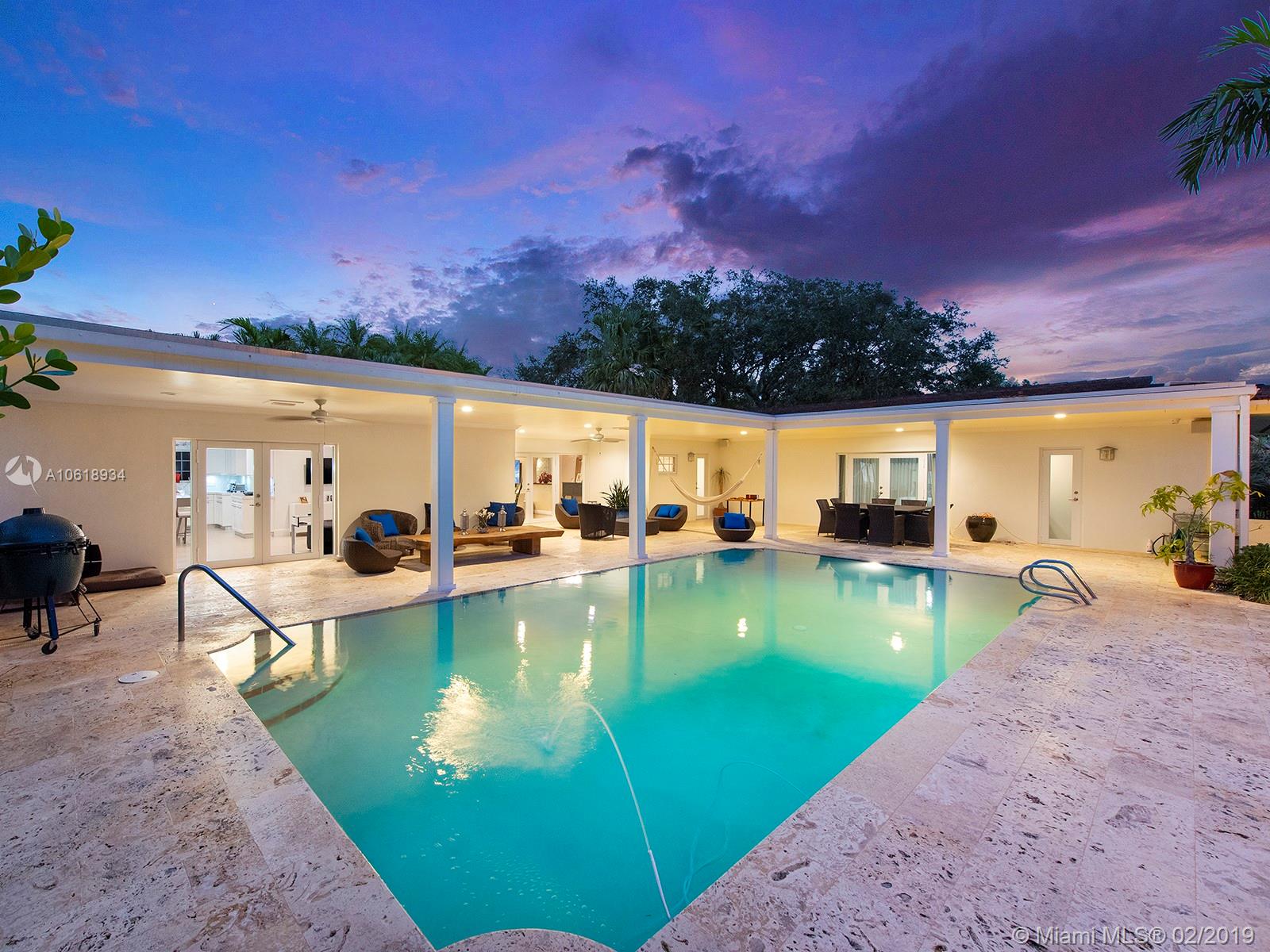 Perfectly located in Coral Gables’ exclusive Pine Bay Estates community, this 4,500 sqft home has been updated & modernized to be a true turn-key purchase. Featuring 4 large bedrooms, 3 full bathrooms, and a “bonus room”, this home is perfect for entertaining and large families. The kitchen, dining room and living room have been completely updated and offer an open floorplan that is inviting and practical. A 1-car garage, solar panels, and generator give the home some additional functionality and peace-of-mind in modern times. Its ¾ Acre lot offers privacy and tranquility in its lushly landscaped backyard, complete with pool and large covered patio. Pine Bay Estates is a walled and privately-patrolled community near all of South Miami and Coral Gables’ restaurants and shops.