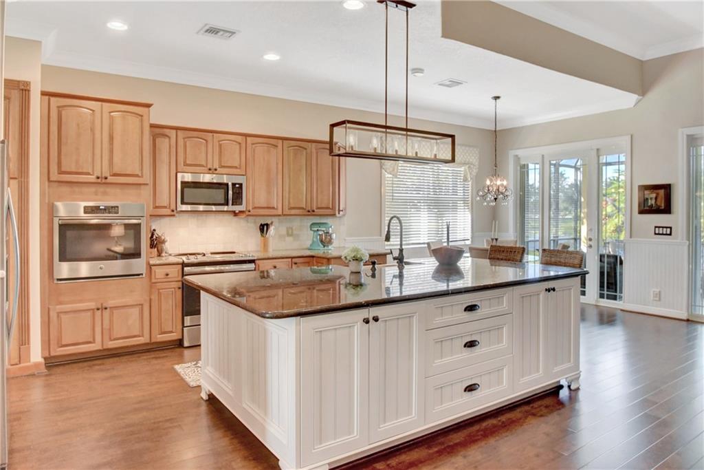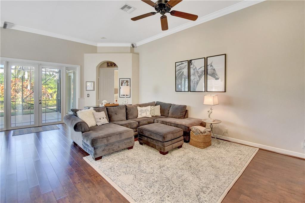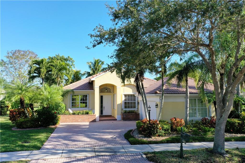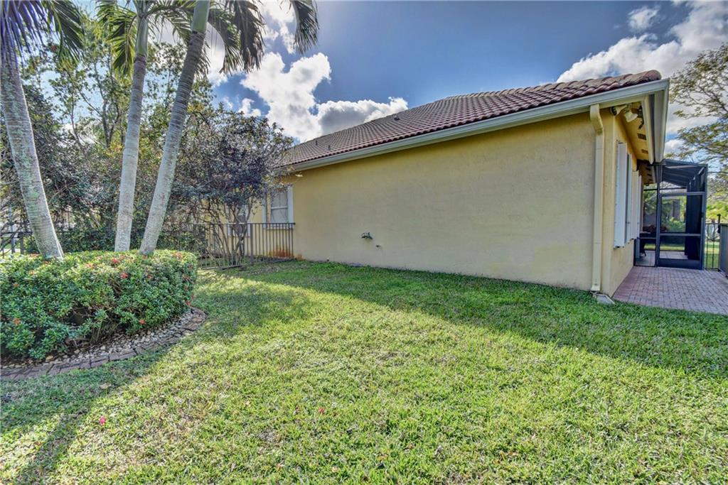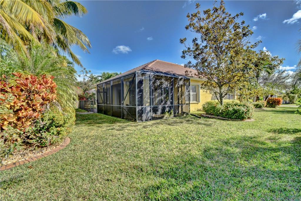 Immaculate 3 bedroom, 2 bath Bimini shows like a model!!! Totally upgraded & customized with 42" wood cabinets, stainless steel appliance, 2 ovens, granite counters, crown moldings & beautiful laminate flooring throughout. French doors leading to a large screened in patio with a fabulous water view. Large fenced yard with room for a pool. Accordion hurricane shutters. Built-in generator hookup in garage. Guard gated community with clubhouse, exercise room, tennis, basketball, heated pool & spa, plus much more.