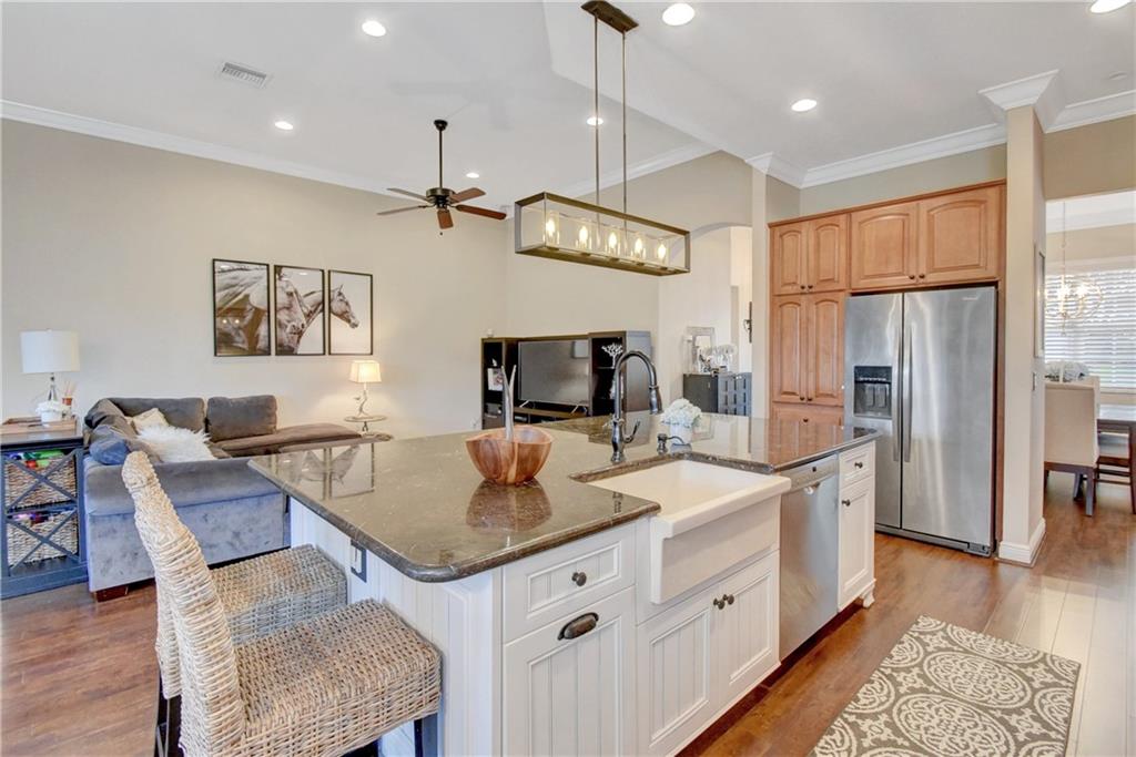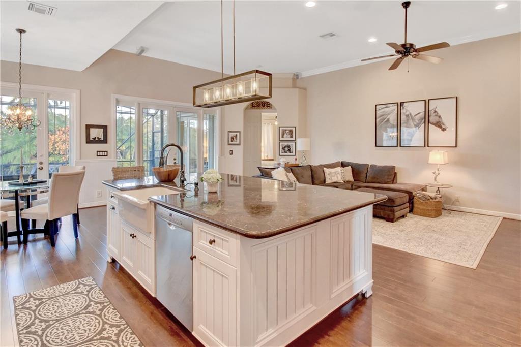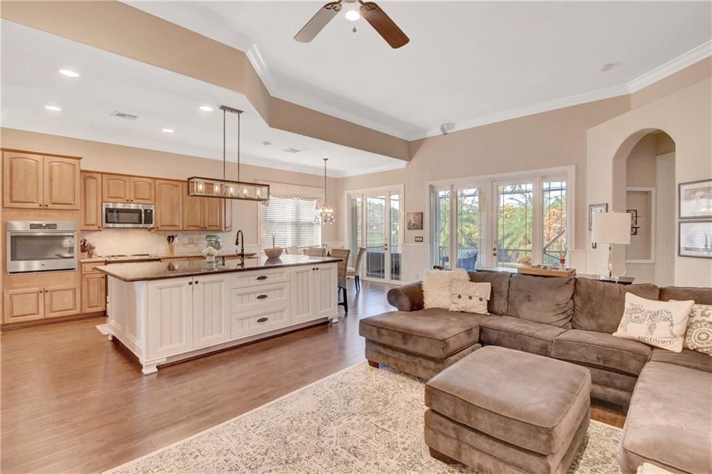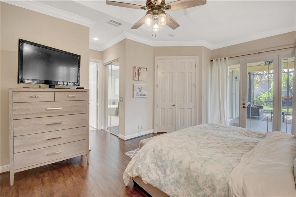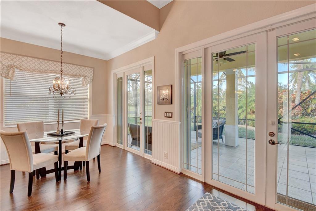 Immaculate 3 bedroom, 2 bath Bimini shows like a model!!! Totally upgraded & customized with 42" wood cabinets, stainless steel appliance, 2 ovens, granite counters, crown moldings & beautiful laminate flooring throughout. French doors leading to a large screened in patio with a fabulous water view. Large fenced yard with room for a pool. Accordion hurricane shutters. Built-in generator hookup in garage. Guard gated community with clubhouse, exercise room, tennis, basketball, heated pool & spa, plus much more.