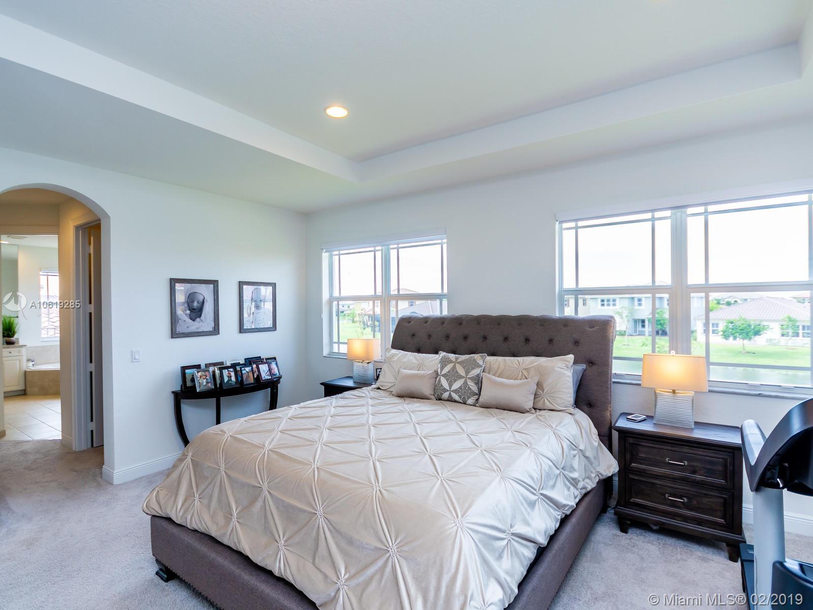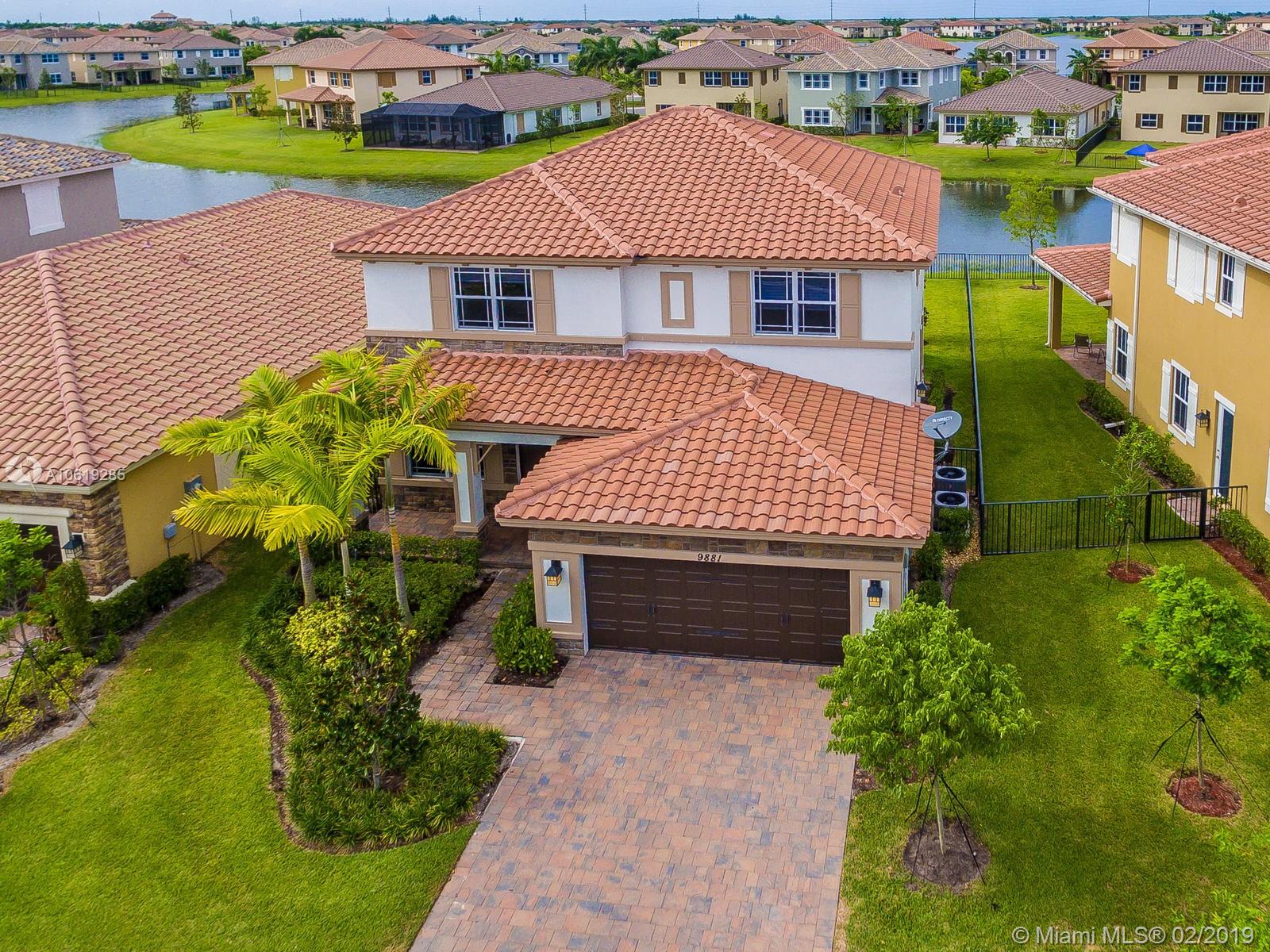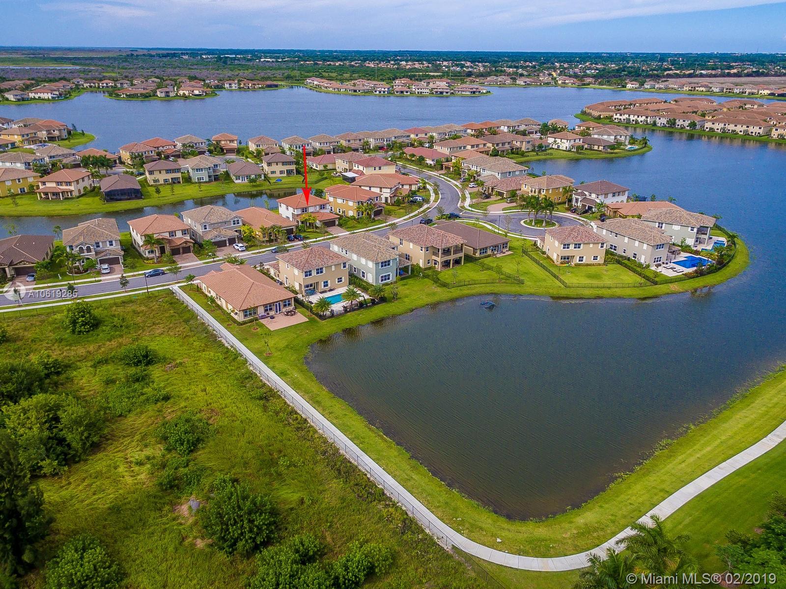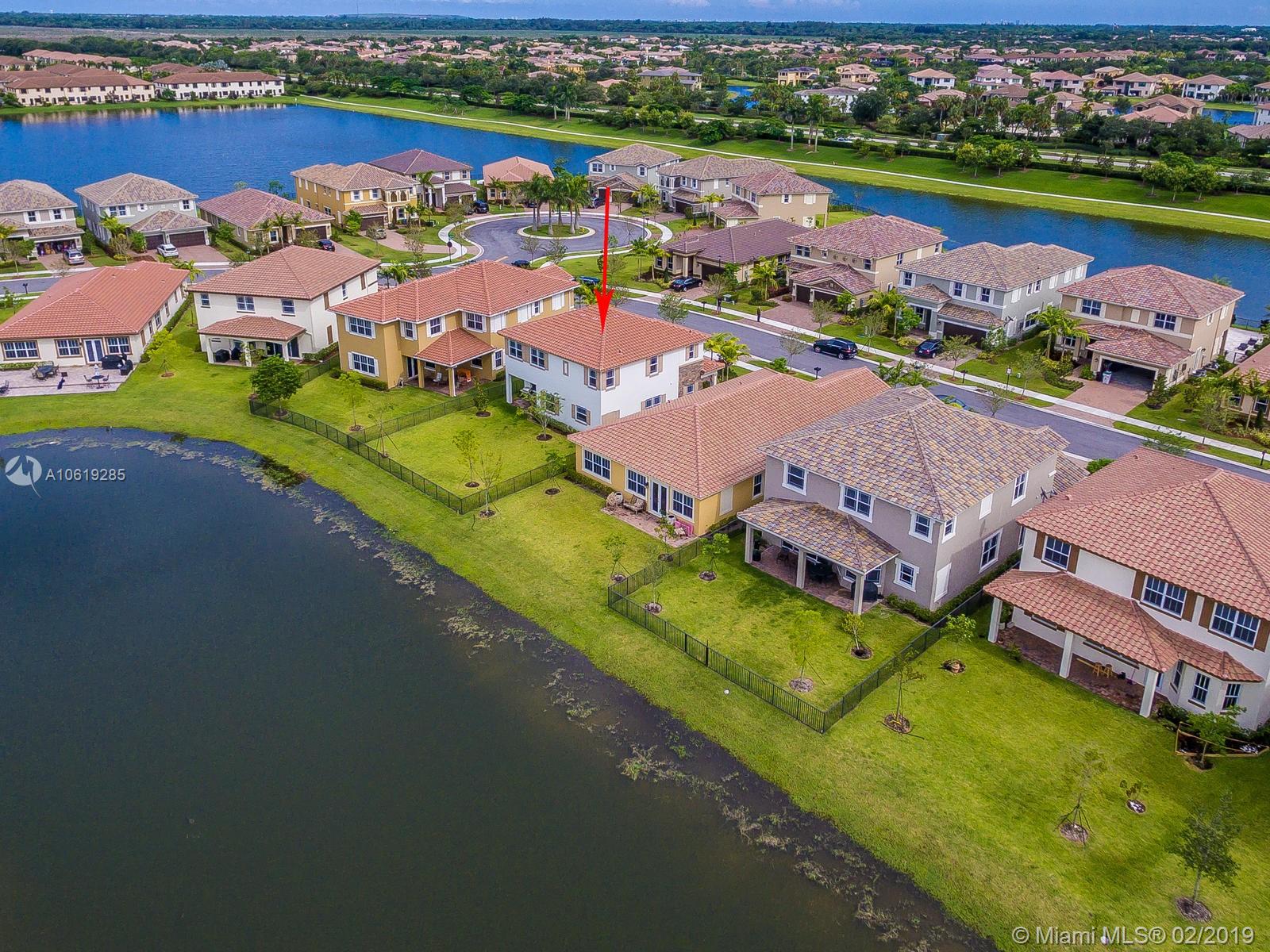 Look no further! The best of Miralago, this waterfront executive model comes with over $55K in upgrades, immaculately kept. High ceilings, polished 24" porcelain tile and wood floors make for a dramatic entrance into this stunning home. A beautiful white kitchen showcases this stunning home with granite countertops, a double oven & energy efficient gas range, overlooking a large fenced in backyard. 4 beds| 4 full baths plus a small guest bedroom/office on the 1st floor gives you plenty of options, includes a lovely cabana bath. Impact windows throughout. Plenty of room for your own pool. Resort style prestigious community with a state-of-the-art pool, fitness & aerobics center, grand ballroom, spa w/sauna and steam room & basketball/tennis courts. HOA includes lawn care. A+ rated schools.