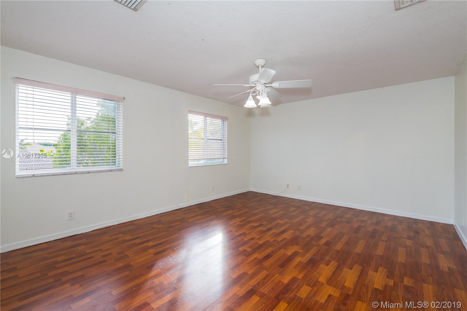 Beautiful, Heather model. Large, 5-bedroom, 4-bath home is move-in ready. The interior has just been painted and is spotless. The home features wood laminate floors upstairs and tile in the living areas, granite counter-tops and Stainless steel appliances. Large master-bedroom with walk-in closets and a large bath with dual sinks and separate tub/shower. There is an upstairs sitting area, one bedroom upstairs with its own bathroom, The family room is huge, there is a laundry room with a window, and a two car garage. The covered patio faces a large, back-yard. Two AC units, one newer, newer water heater. Savanna has the best clubhouse in Weston, with a heated lap pool, huge, general use pool, water slide, 2 kids pools, mini-golf and a cafe on the premises. Next to YMCA and Regional park.