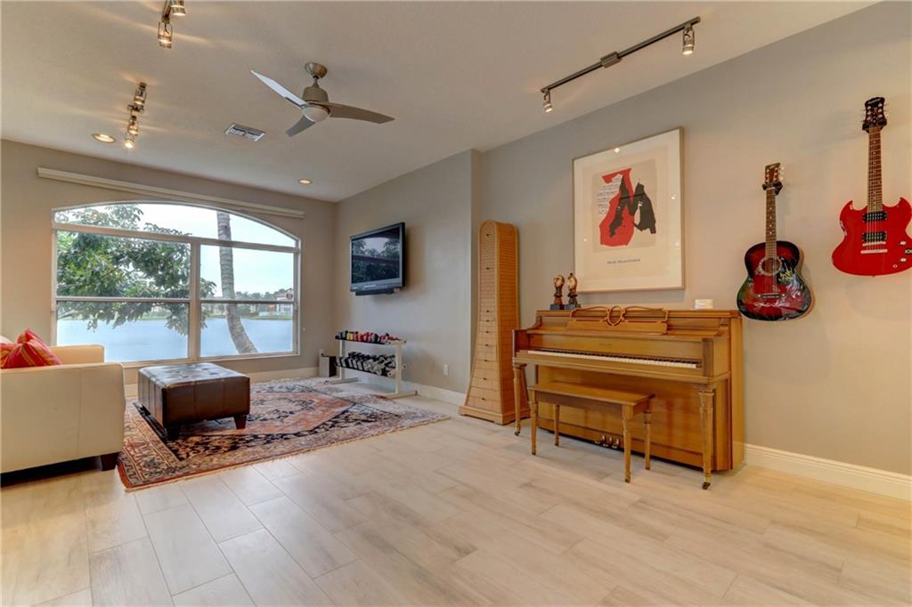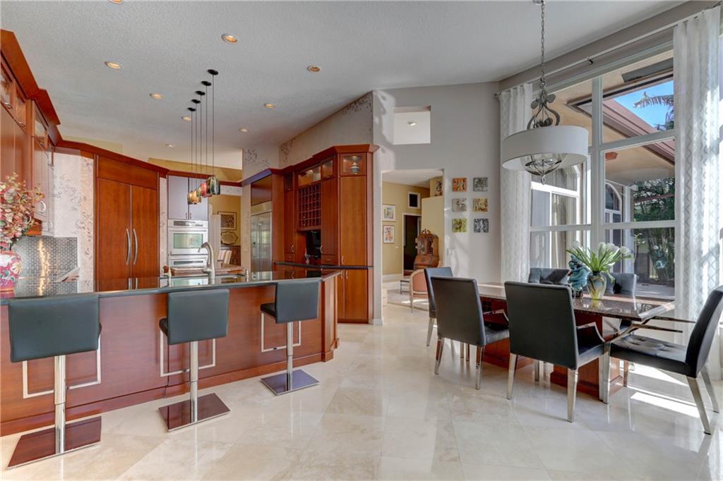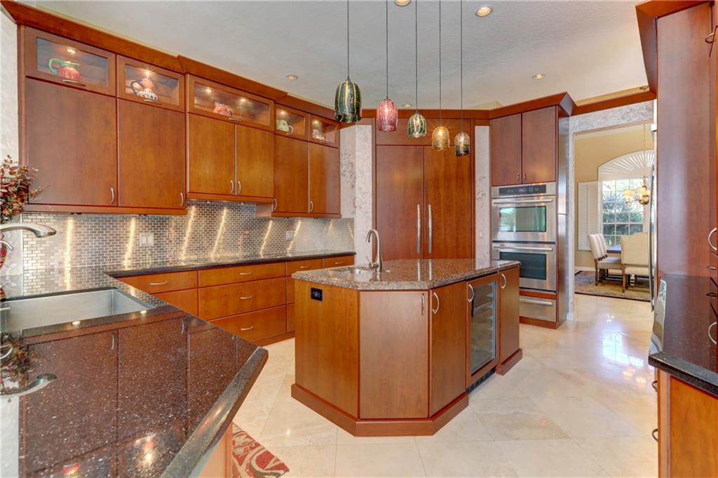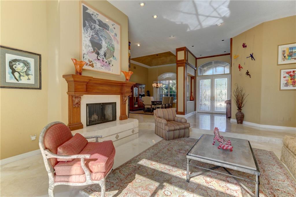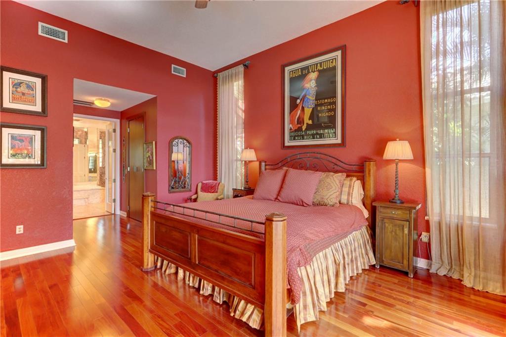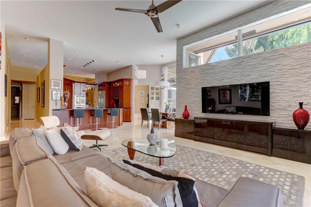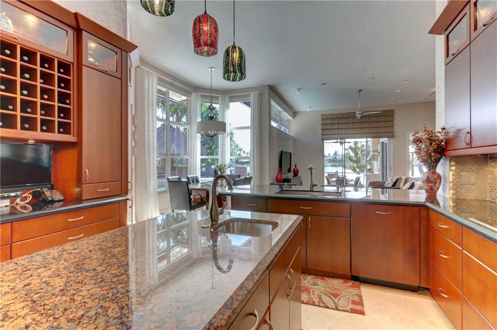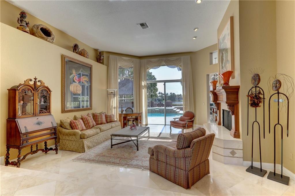 Gorgeous lakefront home in guard gated community of Plantation Palms! Over 4,000 square feet under air with 6 bedrooms/4 bathrooms. Triple split floor plan w/14' volume ceilings! Home features a beautiful kitchen w/wood cabinetry, granite counter tops, Jennair SS appliances, wine fridge & large pantry. Saturnia marble flooring in the main living areas. Wood flooring & porcelain tile in the bedrooms. Master suite includes two walk-in closets w/built-ins. Enjoy entertaining in the backyard which features stunning lake views, over sized pool deck w/travertine marble pavers & tiki hut. 330 sq ft screened in patio, outdoor kitchen with built-in BBQ grill & exhaust. Roof 2007. Impact rated garage doors. Zoned for A-rated Central Park Elementary!