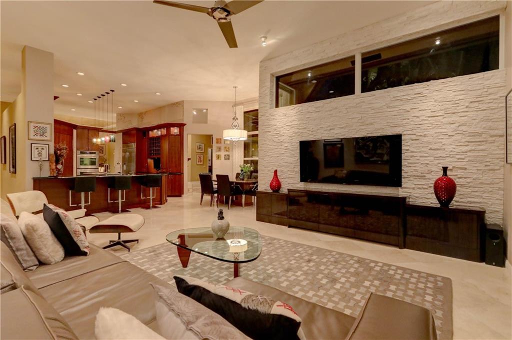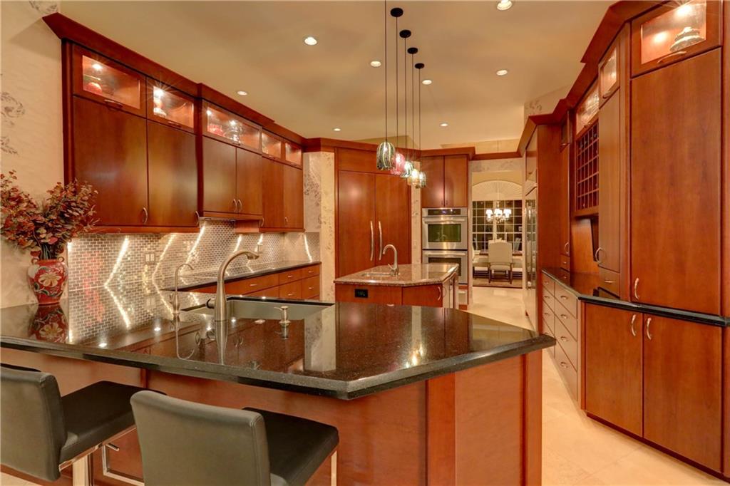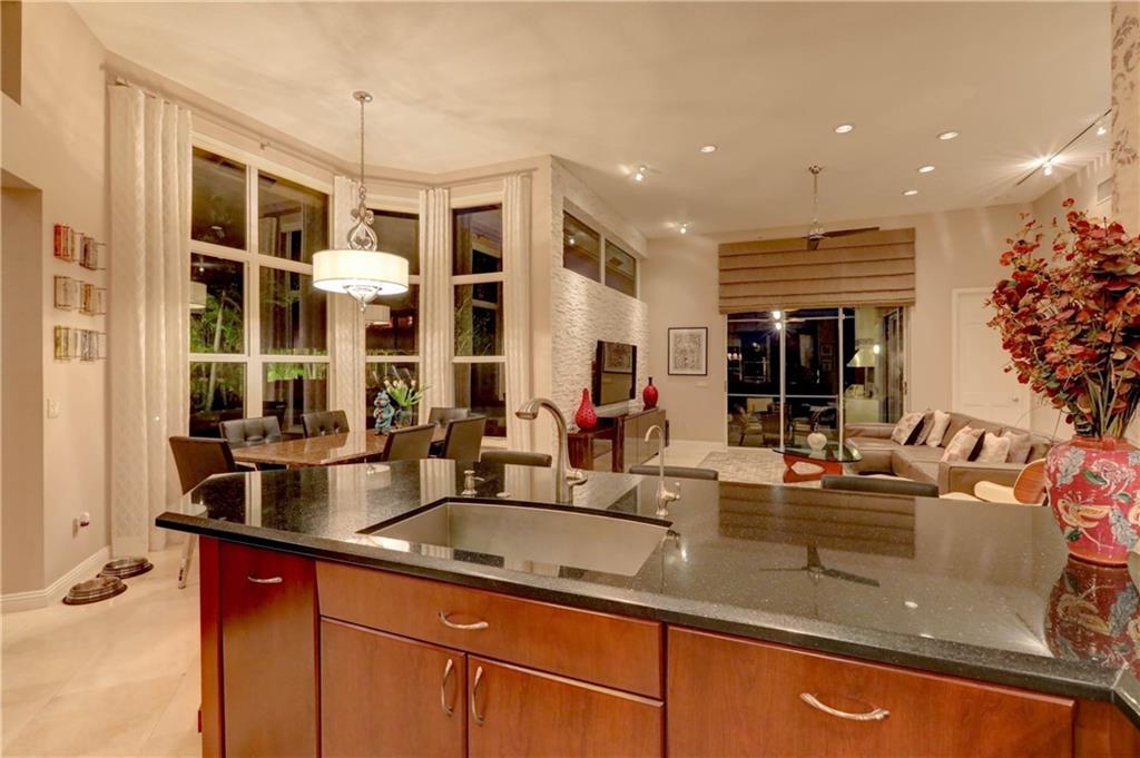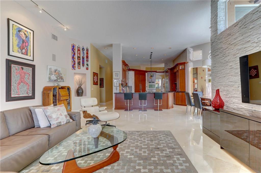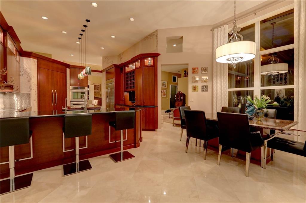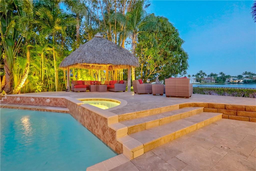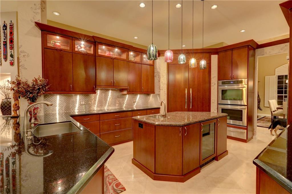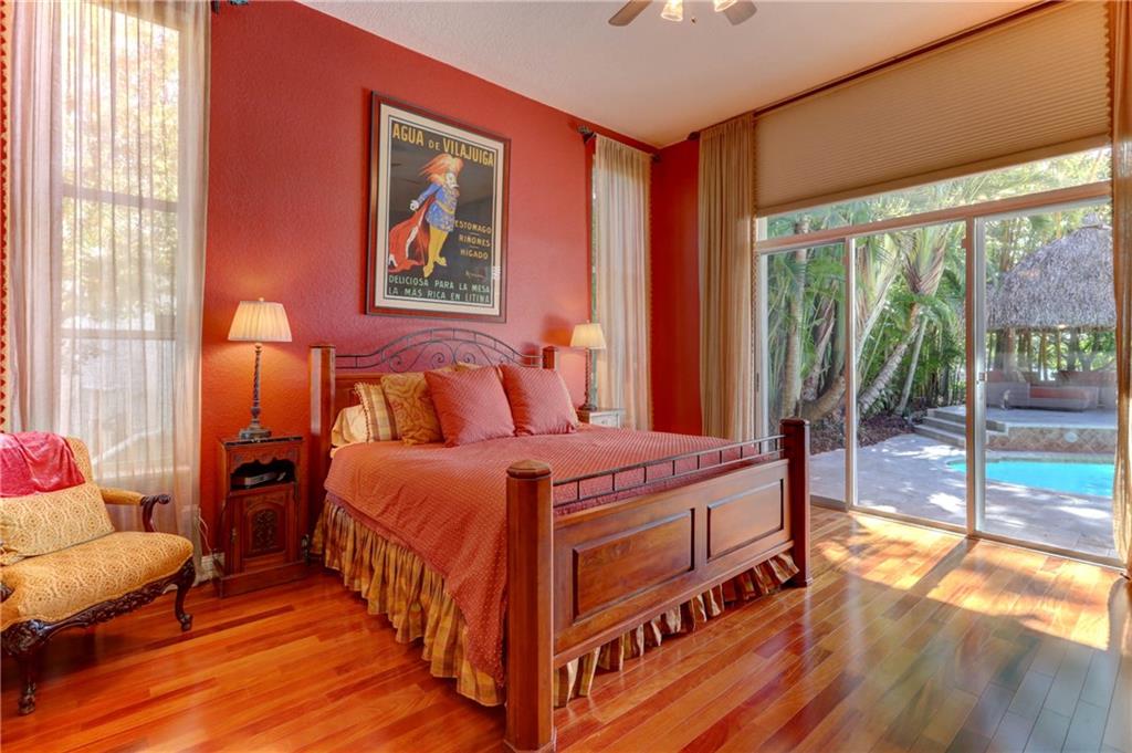 Gorgeous lakefront home in guard gated community of Plantation Palms! Over 4,000 square feet under air with 6 bedrooms/4 bathrooms. Triple split floor plan w/14' volume ceilings! Home features a beautiful kitchen w/wood cabinetry, granite counter tops, Jennair SS appliances, wine fridge & large pantry. Saturnia marble flooring in the main living areas. Wood flooring & porcelain tile in the bedrooms. Master suite includes two walk-in closets w/built-ins. Enjoy entertaining in the backyard which features stunning lake views, over sized pool deck w/travertine marble pavers & tiki hut. 330 sq ft screened in patio, outdoor kitchen with built-in BBQ grill & exhaust. Roof 2007. Impact rated garage doors. Zoned for A-rated Central Park Elementary!