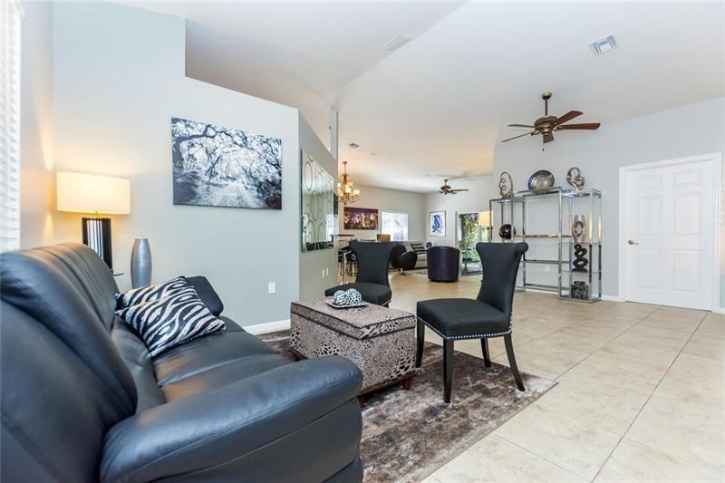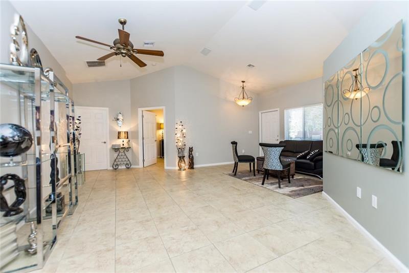 This home was re-built in 2008 leaving some walls of the original structure. Plans and construction pictures available. Vaulted ceilings in living area, open floor plan, large custom kitchen with granite countertops. Large walk in fitted closet in master bedroom. Double vanity and corner tub/shower in master bath. Impact windows and sliding glass doors in living room to rear yard. Mature front and rear yard with orange tree and substantial palm trees.