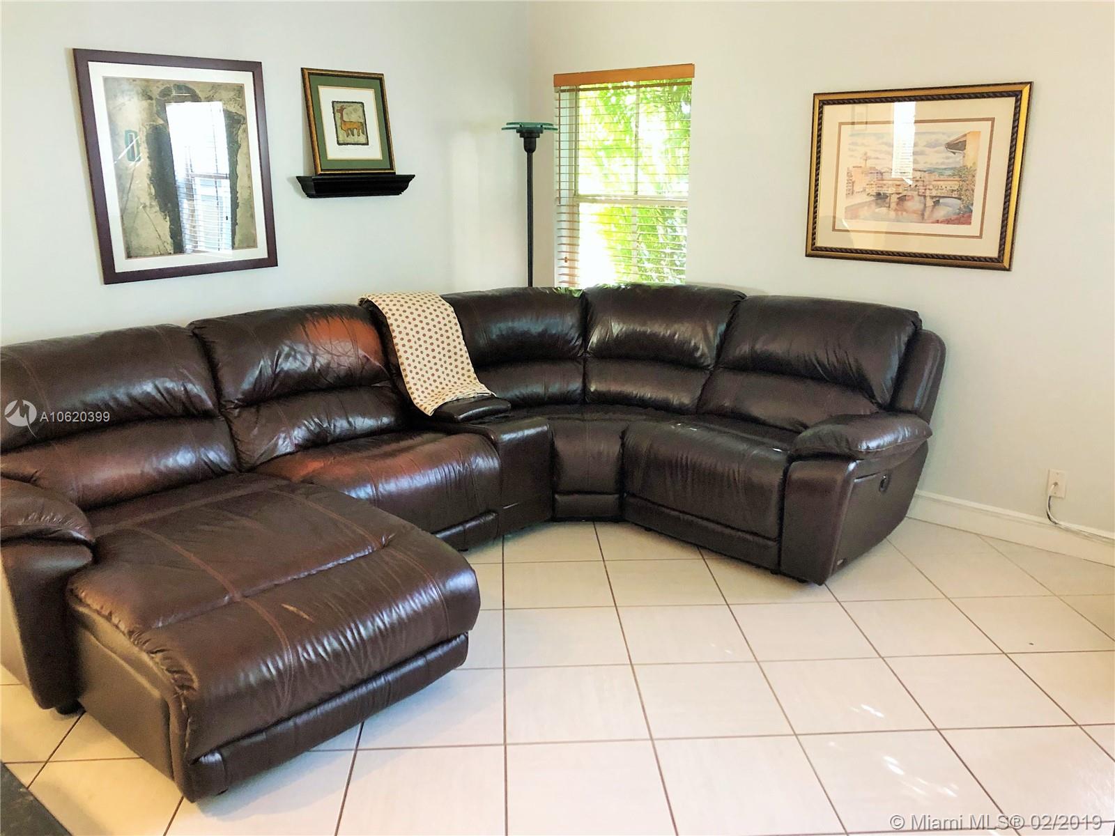 Just bring your furniture. Beautifully kept 3 bedrooms, 2 baths, 2 car garage in The Ridges. Diamond pattern ceramic flooring throughout, upgraded kitchen with Thomasville wood cabinets, granite countertop and stainless steel appliances. Walk into your open space living and dining area with slate style stone wall and crown moldings. All popcorn has been removed from the high ceilings for a modern look. French doors lead to private backyard with extended pavers on patio deck. Home also features impact windows in the back, California Closets, newer water heater and newer washer and dryer inside the home. Home located in resort style community with 24 hour guard gate, clubhouse, swimming pool, basketball courts and more. A+ schools, close to shopping, transportation and entertainment.