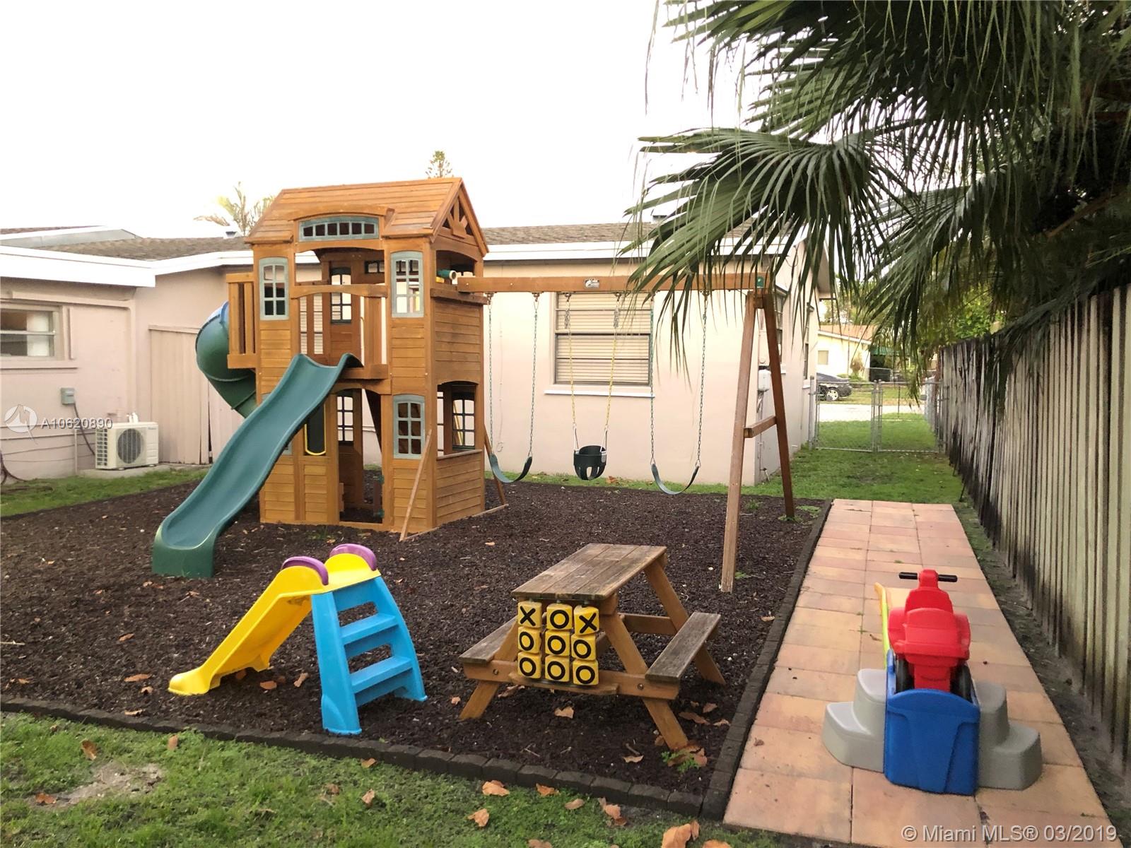 Beautiful large home in desirable area of Hialeah. This home has a circular driveway with plenty of parking space, large kitchen with pantry closet and stainless steel modern appliances, 4 bedrooms which 2 of them are master bedrooms, a total of 4 full bath, living room, formal dining room, family room, laundry room, plenty of closet space and a 15x15.5 study with its own full bath with separete entry/exit door to patio. A beautiful large back yard with covered patio area, fruit trees, shed and large kids playground included. Home has hurricane shutters. New roof, less than 3 years old with newer a/c & water heater. Home is in a beautiful neighborhood with nearby restaurants and shops. A must see!