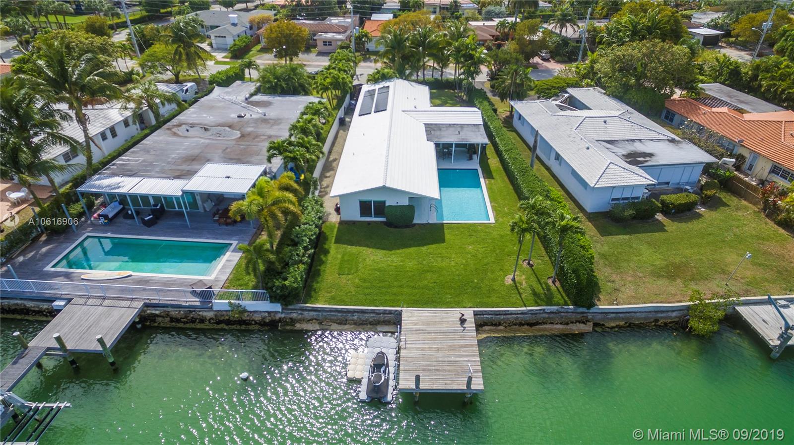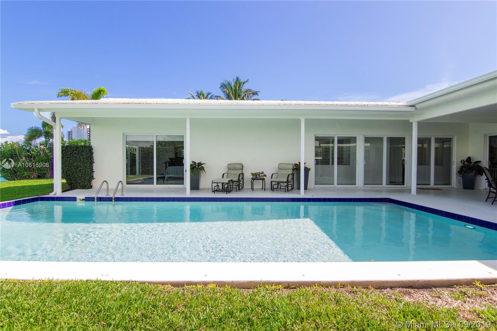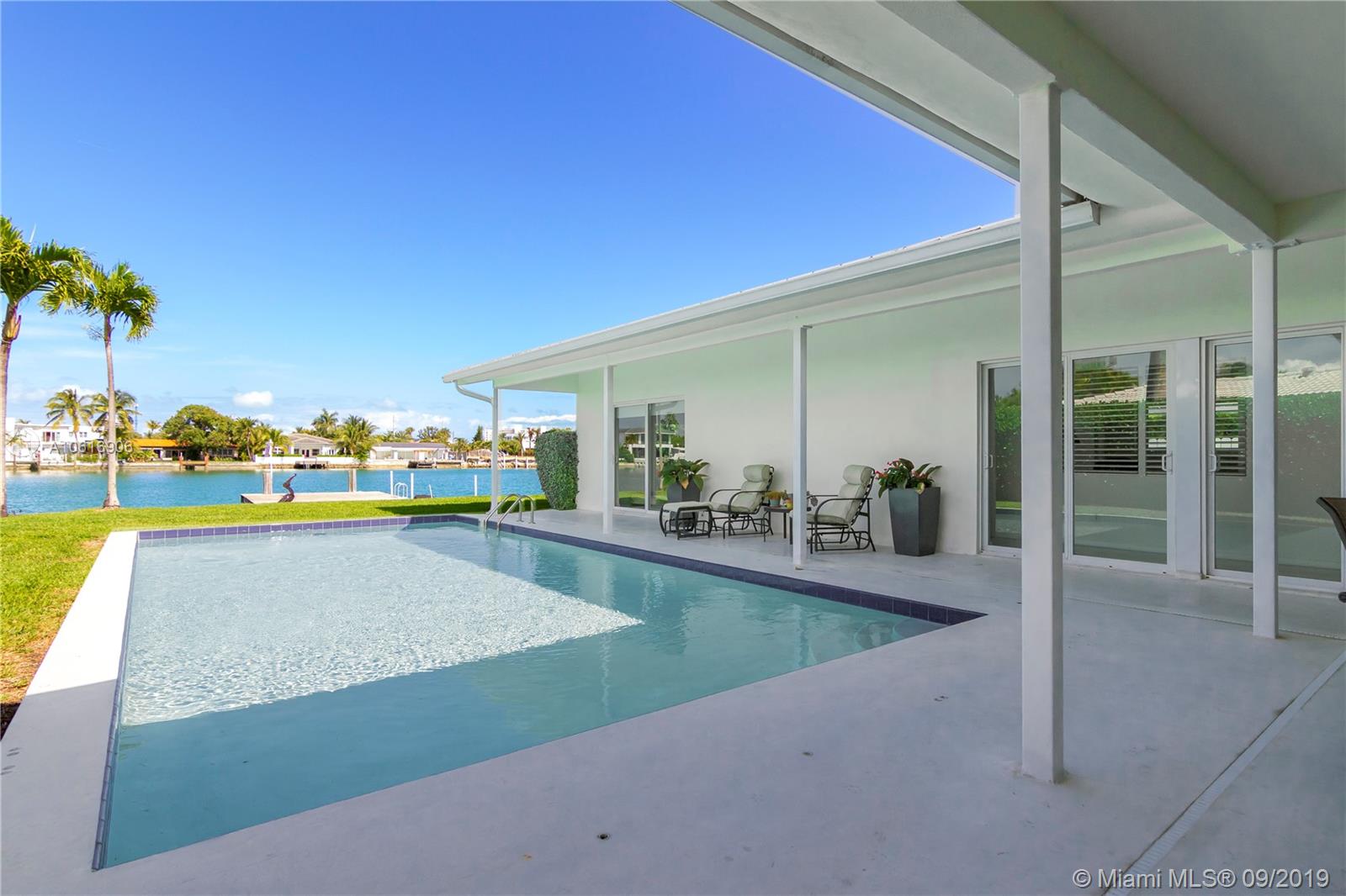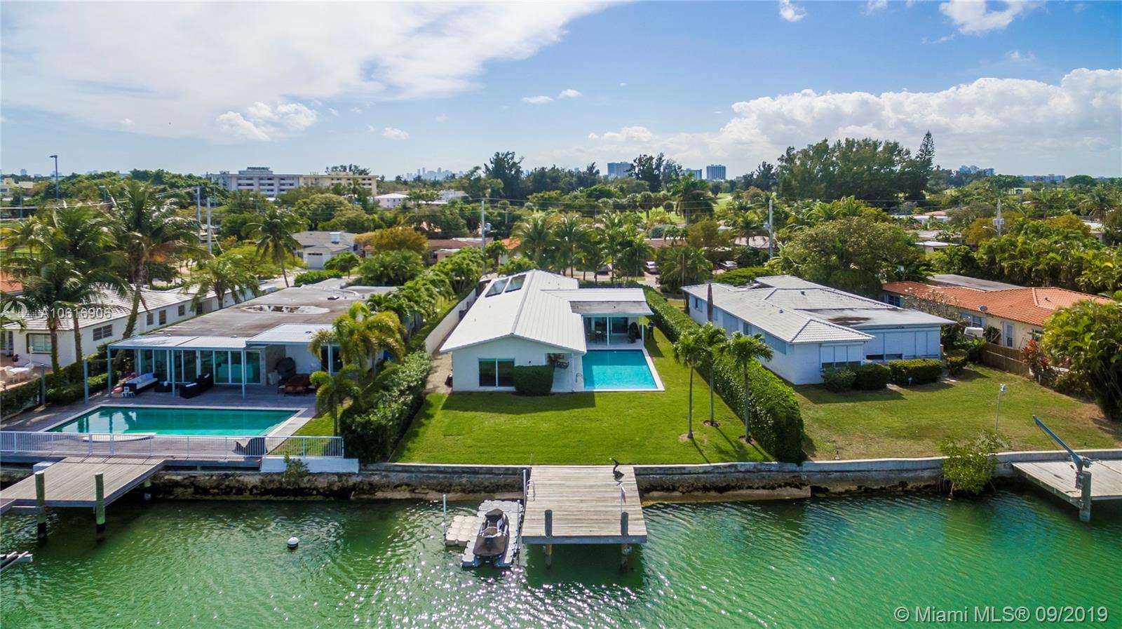 Motivated seller! Live on Miami Beach's Normandy Isle! Located on gorgeous open wide water, perfect for your yacht and family entertaining. Completely remodeled, this over 2,800 SF home is on a guard gated island with golf course, community park, tennis courts, playground, and country club. Home has been designed with concrete floors, impact glass windows & doors, heated swimming pool, and outdoor covered area, chef's kitchen w/quartz counters, Built-in salt water fish tank, beautiful bathrooms, all updated plumbing and electrical. Modern home with open kitchen perfect for todays living plus a breathtaking open bay view for any size boat.