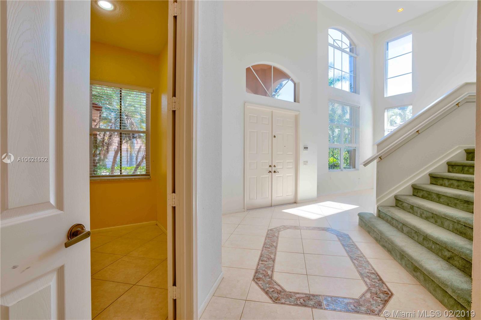 Exclusive Weston Hills Golf Community with Guarded Gate Access. This 5 Bedroom home is nestled amongst a gorgeously maintained neighborhood. Expansive open plan family-kitchen area with glass sliders leading out to a large paved patio and sparkling pool. 4 Bedrooms upstairs with extensive walk-in closets and a downstairs bedroom which may be used as an extra entertainment area or ample kids play room. A clean palette to realize your dream home with volume ceilings, cabana bath and 3 car garage. Conveniently close to golfing, basketball courts, tennis courts, shopping, dining, entertaining and some of the best schools in SE Florida.