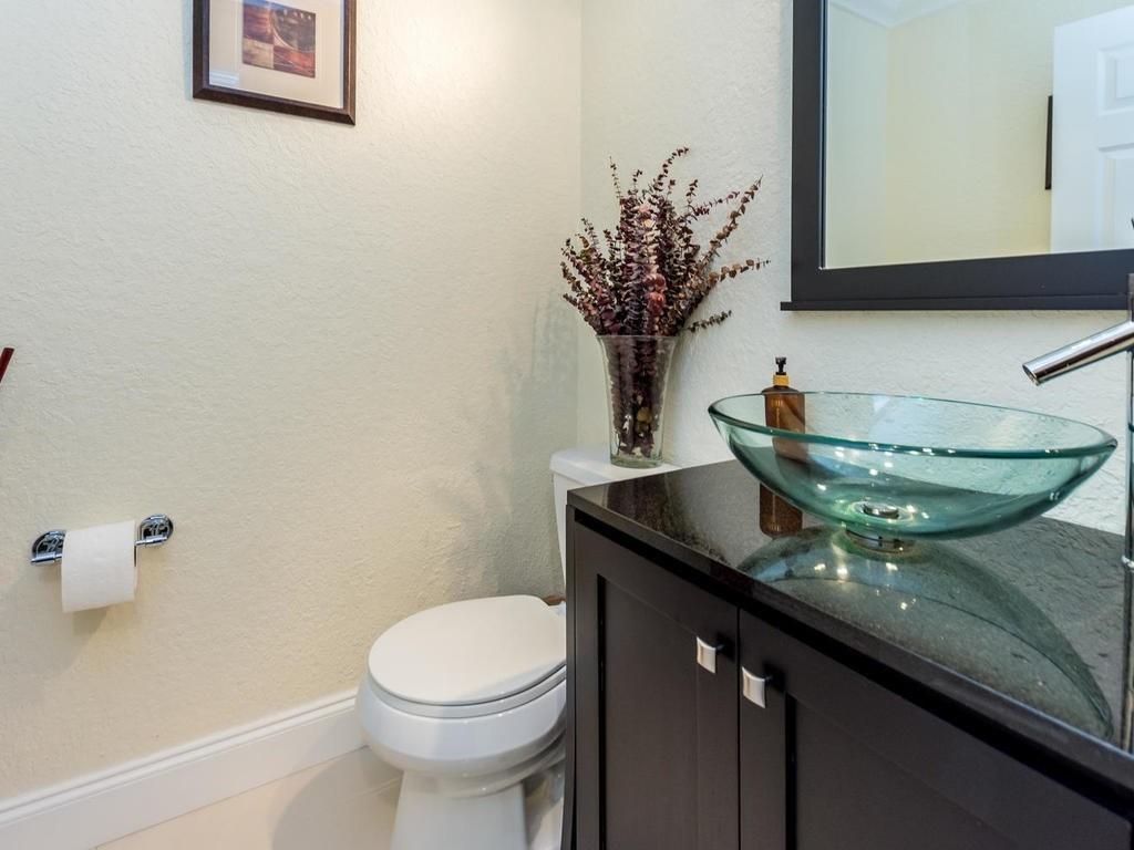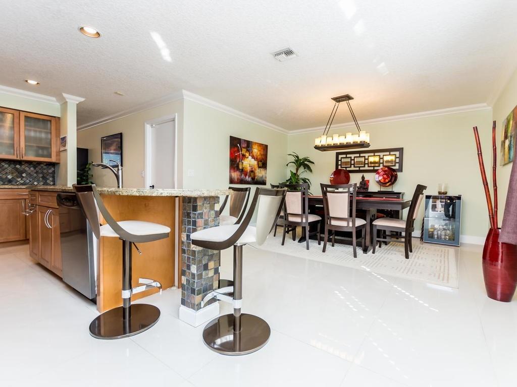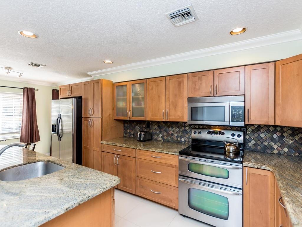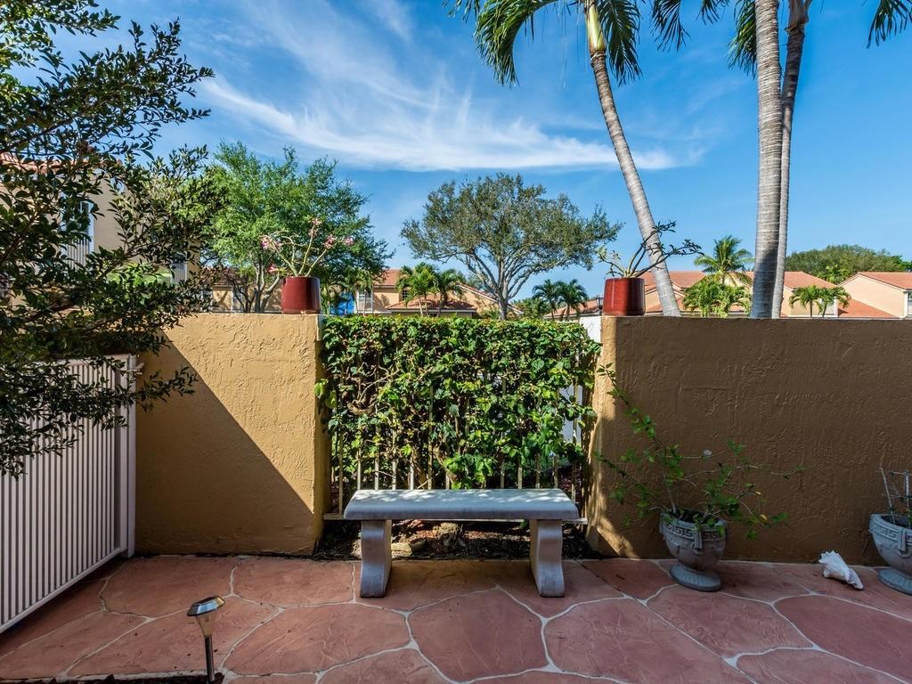 This beautiful townhouse located in well sought Portofino features a great open floorplan layout. The entrance steps into a formal living room with volume ceilings. Separate dining leads to a spacious open kitchen including stainless steel appliances, granite countertops, wood cabinetry & an island overlooking the family room & breakfast area. Updated powder room on this floor. Plenty of windows & french doors that allow natural light. 3 bedrooms upstairs with master featuring walk in closet, gorgeous bathroom & vaulted ceiling. European porcelain tile downstairs. Laminate floors upstairs. Back patio partially screened. Perfect for entertaining. 1 car garage w/guest parking. This is the most impeccable & upgraded townhouse in the subdivision. "A" schools & excellent location.