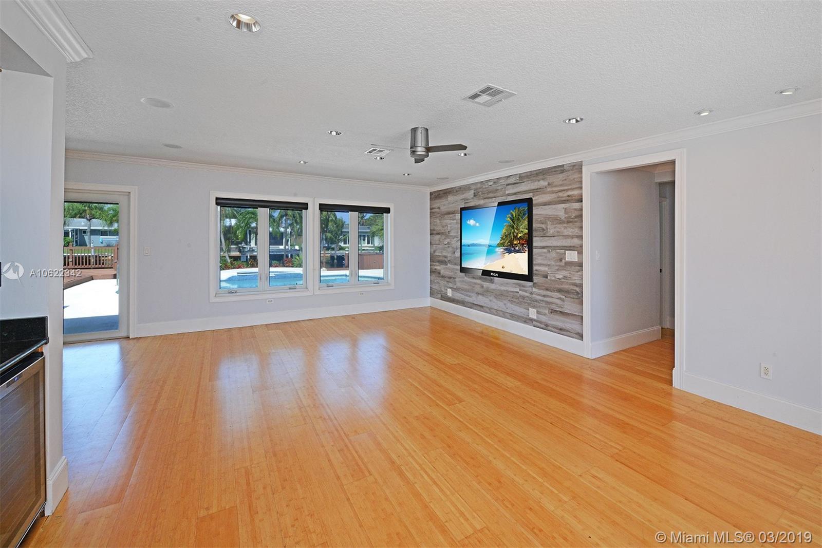 Gorgeous & remodeled, this Waterfront pool home is move in ready! Owners went over the top, no expense spared! True Chef's kitchen - Top of the line stainless steel Jennair appliances, Custom Omega cabinetry, huge center island with separate sink. A commercial grade, natural gas, 6 burner stove, double ovens, over-sized hood, pot-filler, & warmer lamps. Built in bar with wine cooler & beverage fridge. Beautiful bamboo wood floors throughout living areas, recessed lighting, & electric shades. A custom wood finish porcelain accent wall. Designer porcelain floors in the bedrooms. Luxurious master suite with large walk-in closet, double sinks & glass enclosed shower in the bath. The back yard has a Summer kitchen, resort styled pool/spa, 75 feet on the water, and 16,000 lb Neptune boat lift.