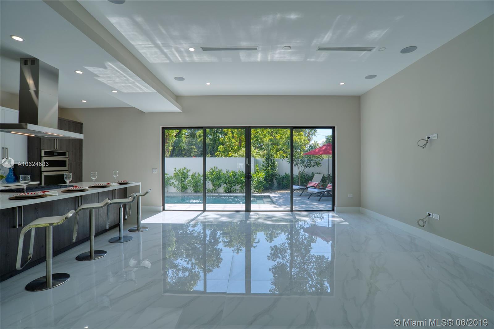 Stunning, brand new in Coconut Grove. This contemporary home has everything to please the most discerning buyer. It features 4 bedrooms, 3.5 bathrooms, formal dining and living room. Open floor plan offers 10ft ceilings, custom kitchen cabinets with gas stove top, Jenn-Air appliances, and quartz backsplash and waterfall countertops. Master Bath has luxury amenities including a soaking tub, rain shower, seamless shower floor & double vanity. Design details include solid wood floors, and stunning 24 by 24 porcelain tile, surround sound system, stairs w/ glass & steel railings, LED Lighting,& Ipe wood front facade. Social areas open up to a spacious backyard with pool and lush landscaping. Step outside & enjoy the breeze from the bay, café-lined streets, nearby parks, and upscale restaurants.